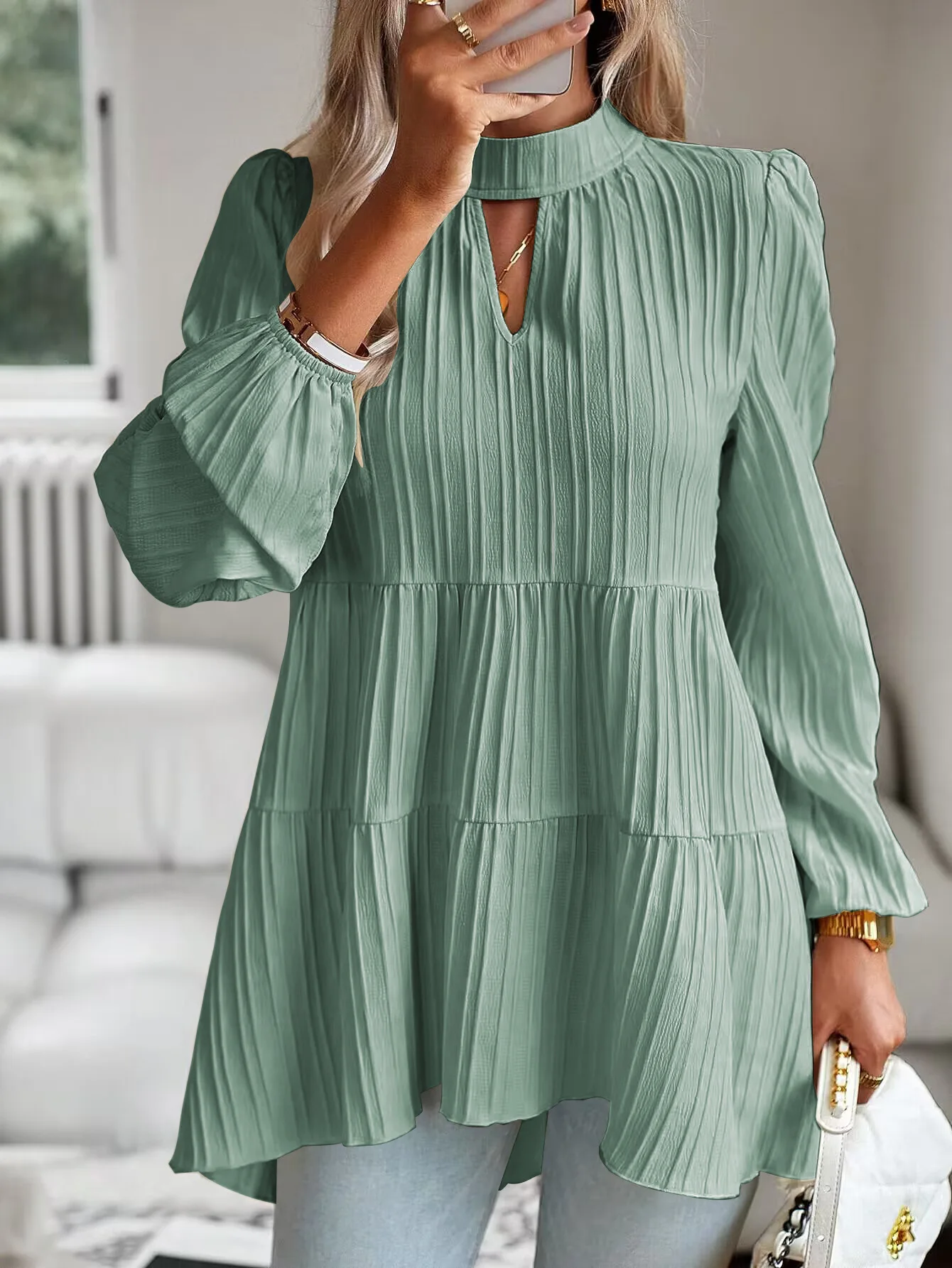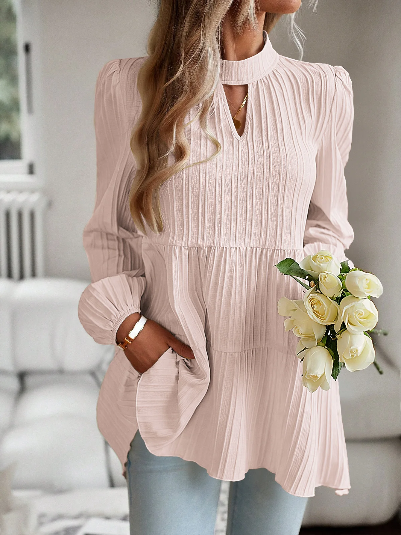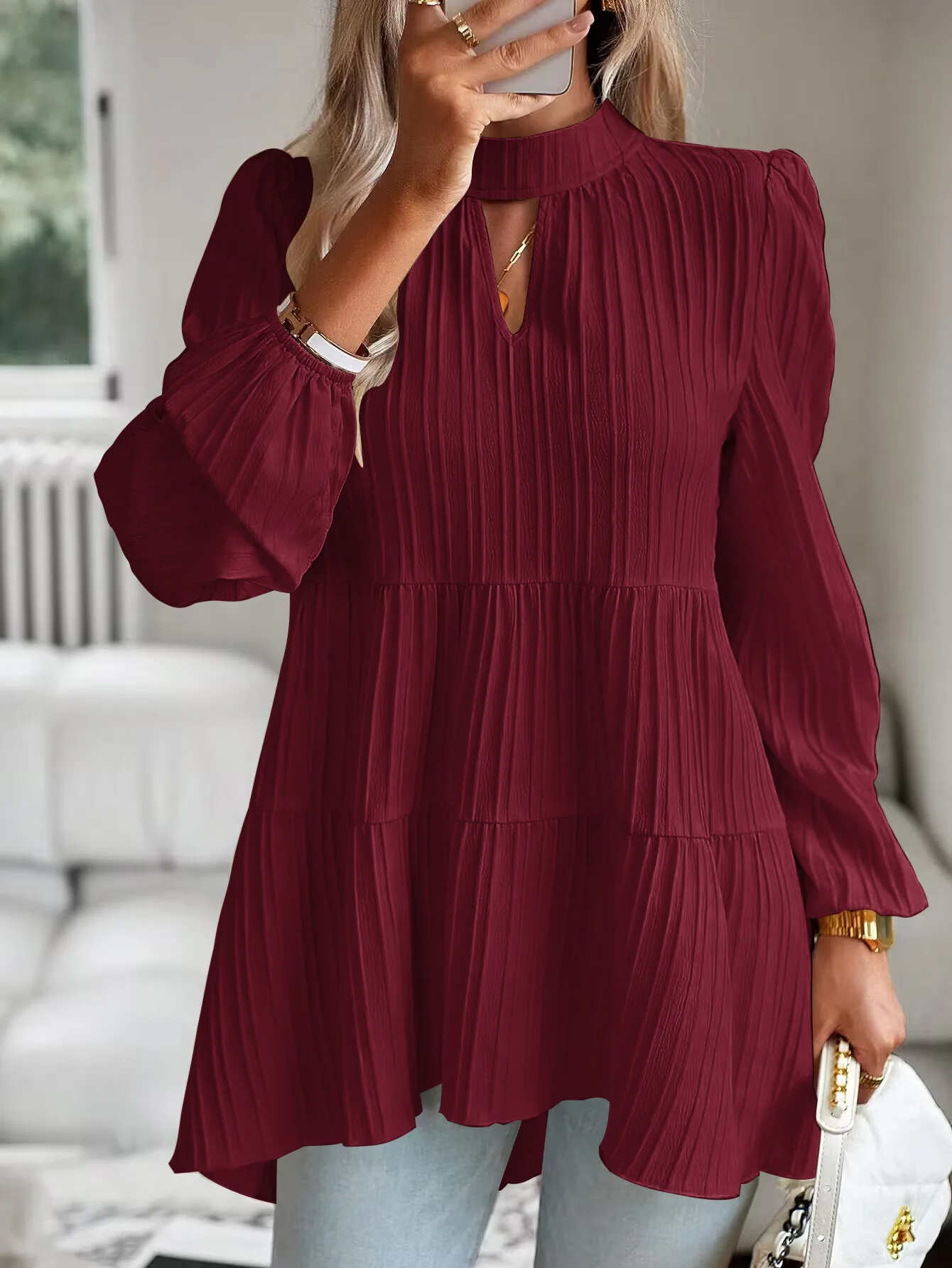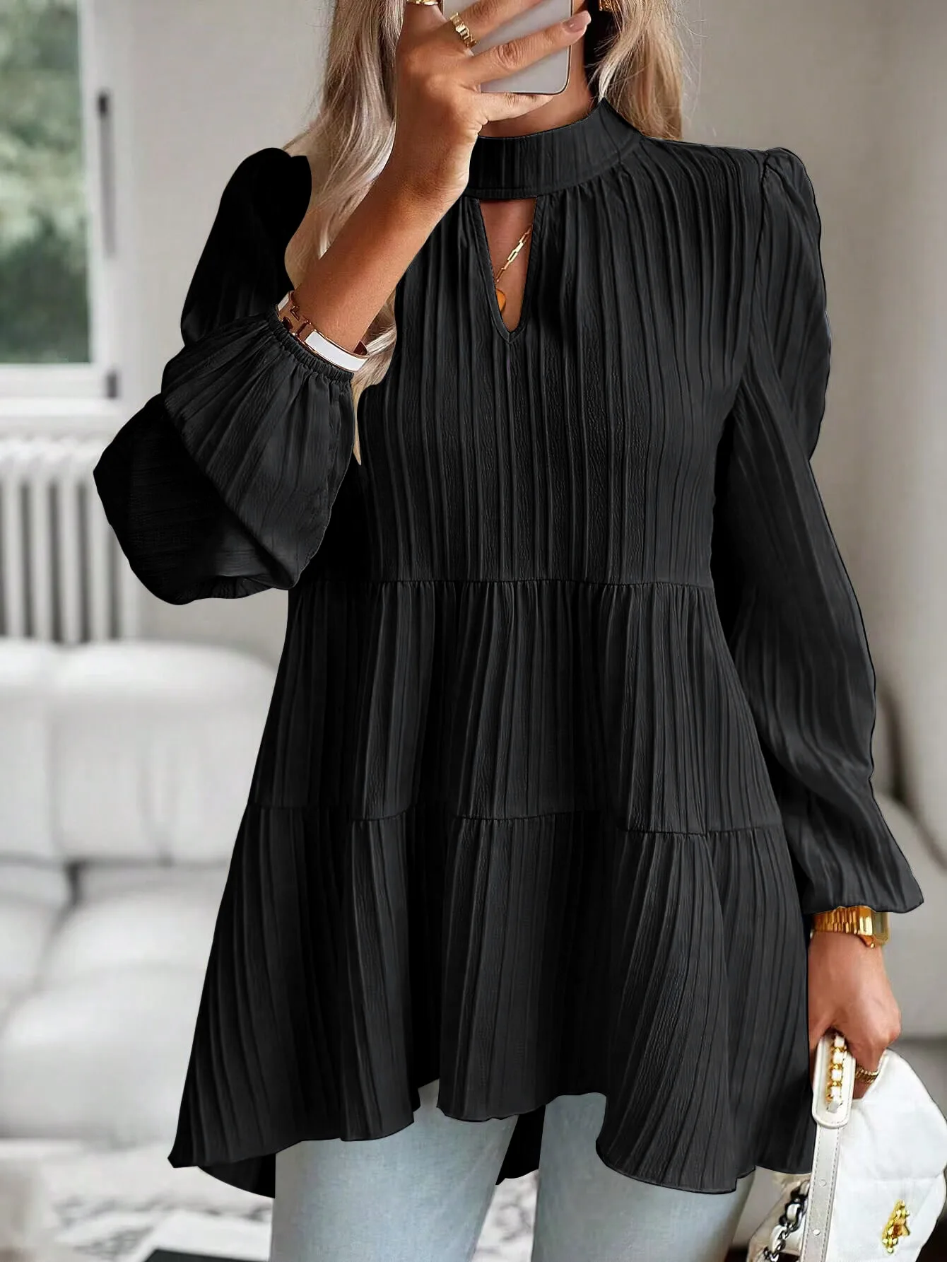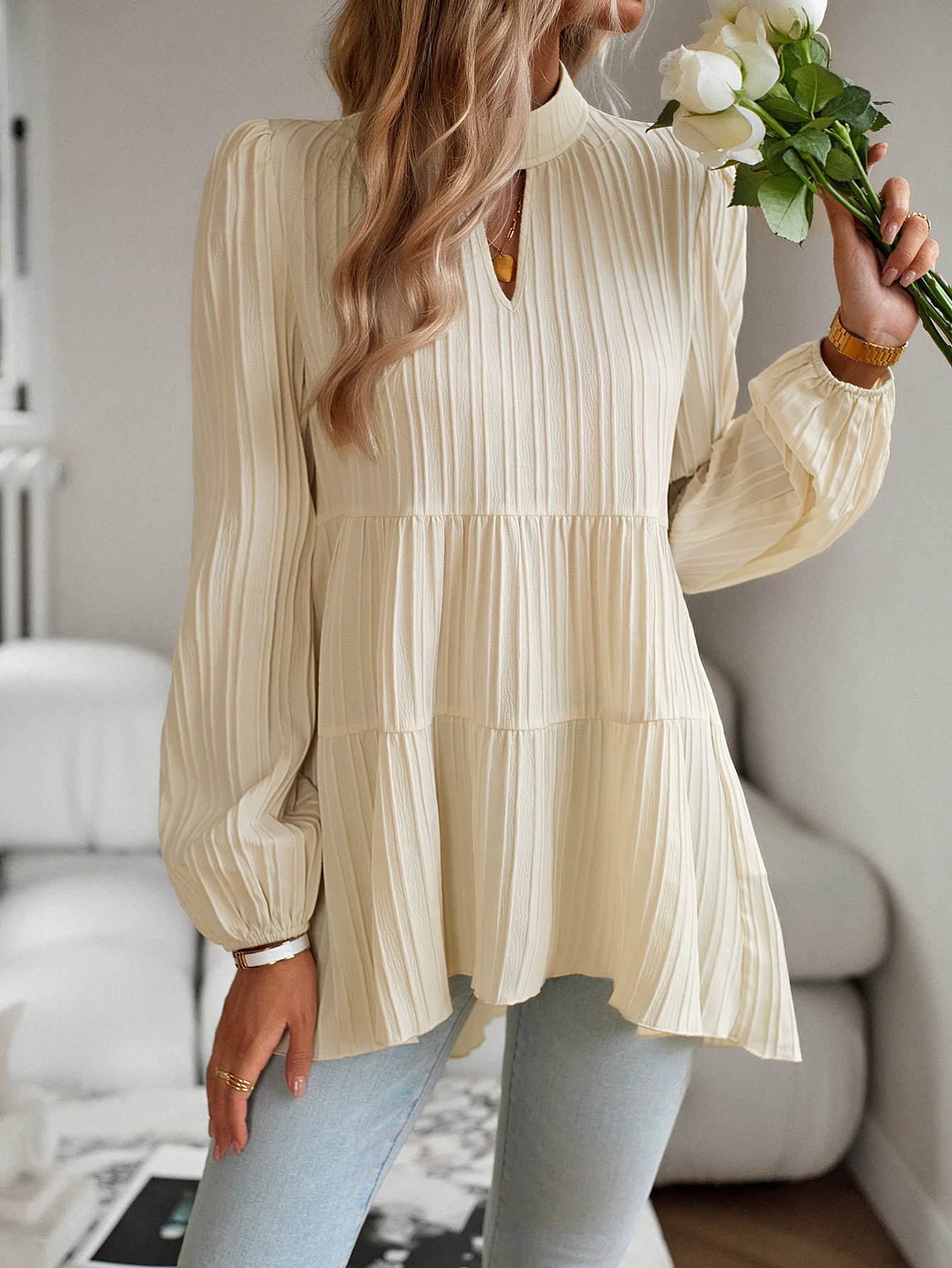 The Solid Casual Loose Blouse Vintage Elegant Blouse. S-XL feels okay in daily use so far.