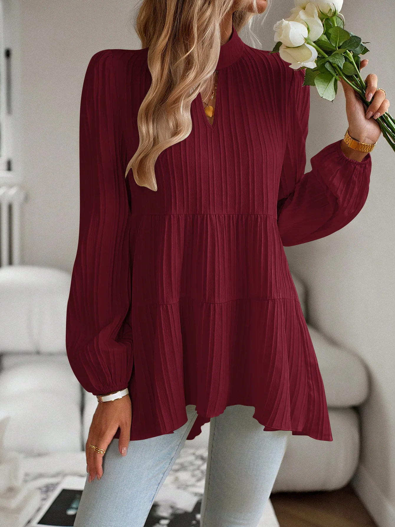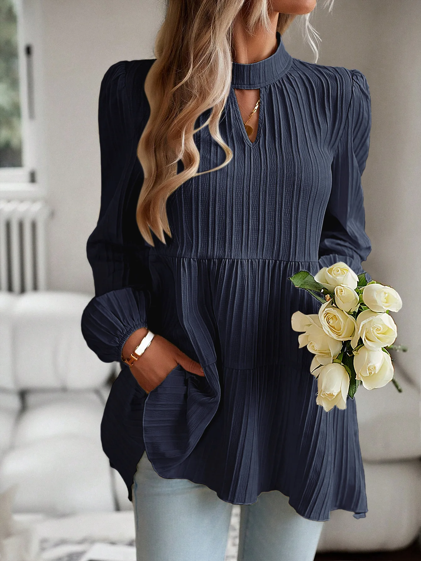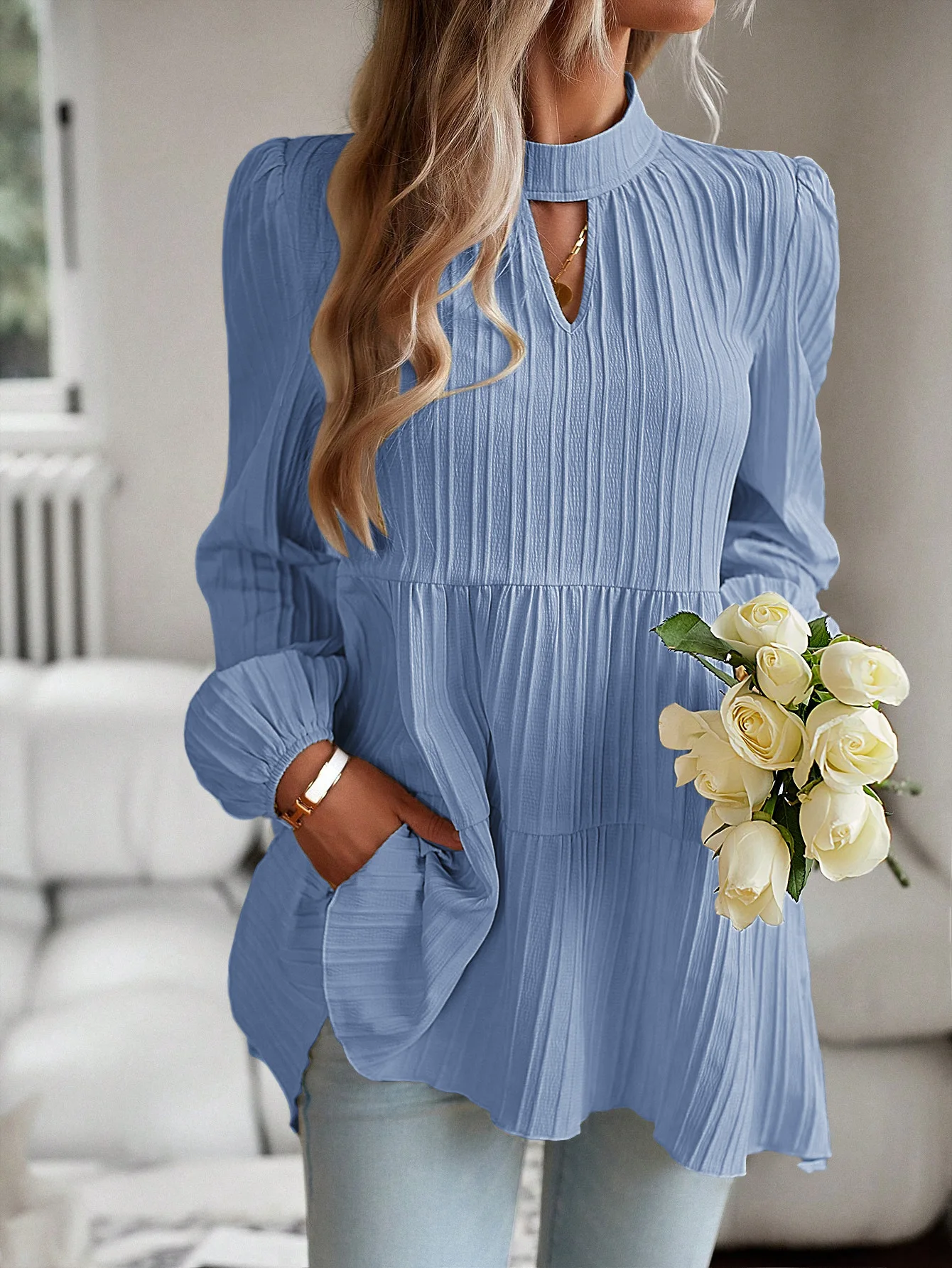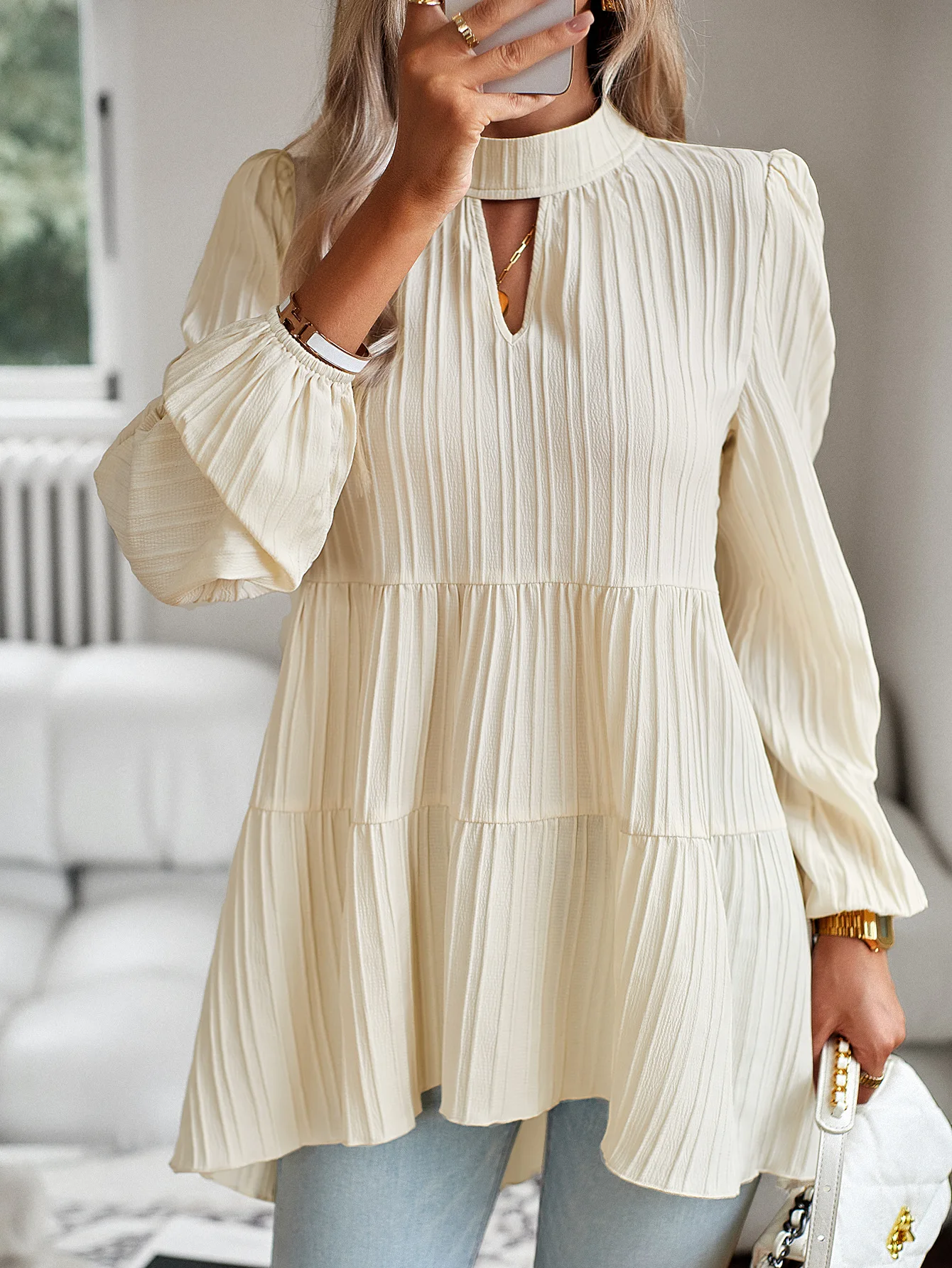 The Solid Casual Loose Blouse Vintage Elegant Blouse. S-XL feels okay in daily use so far.