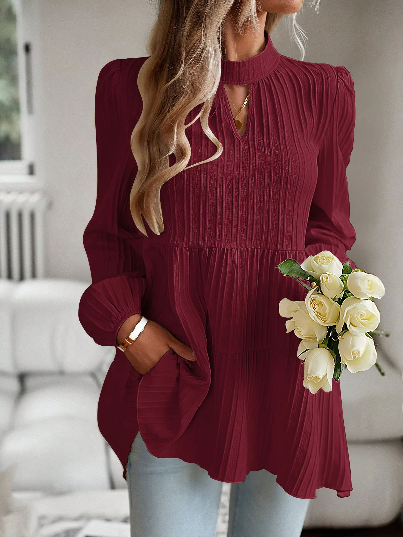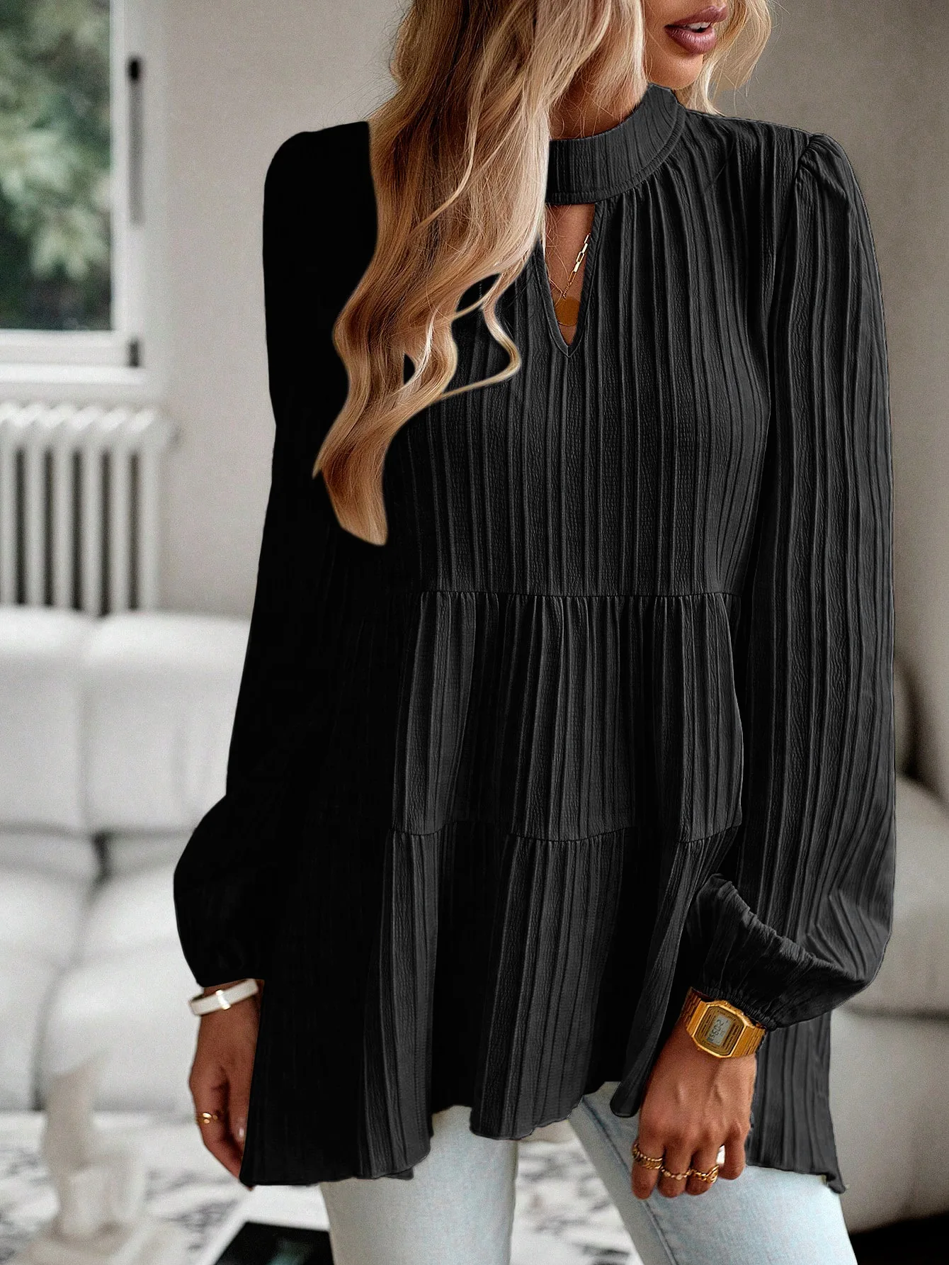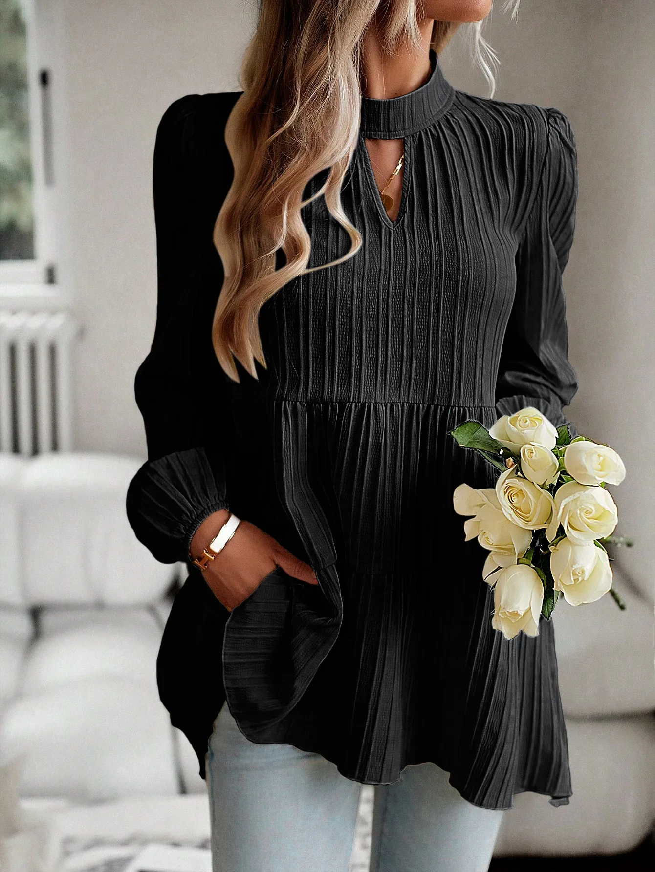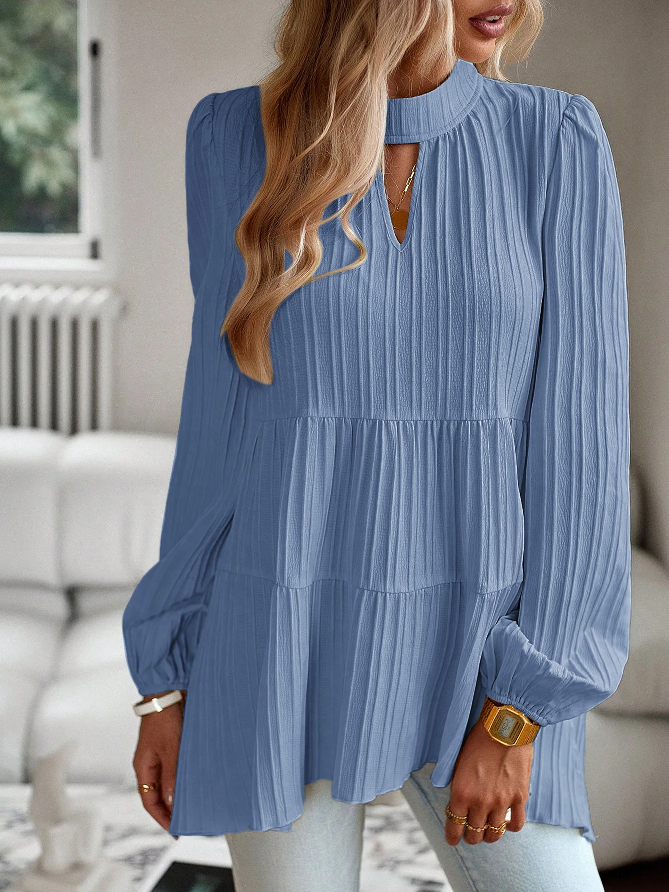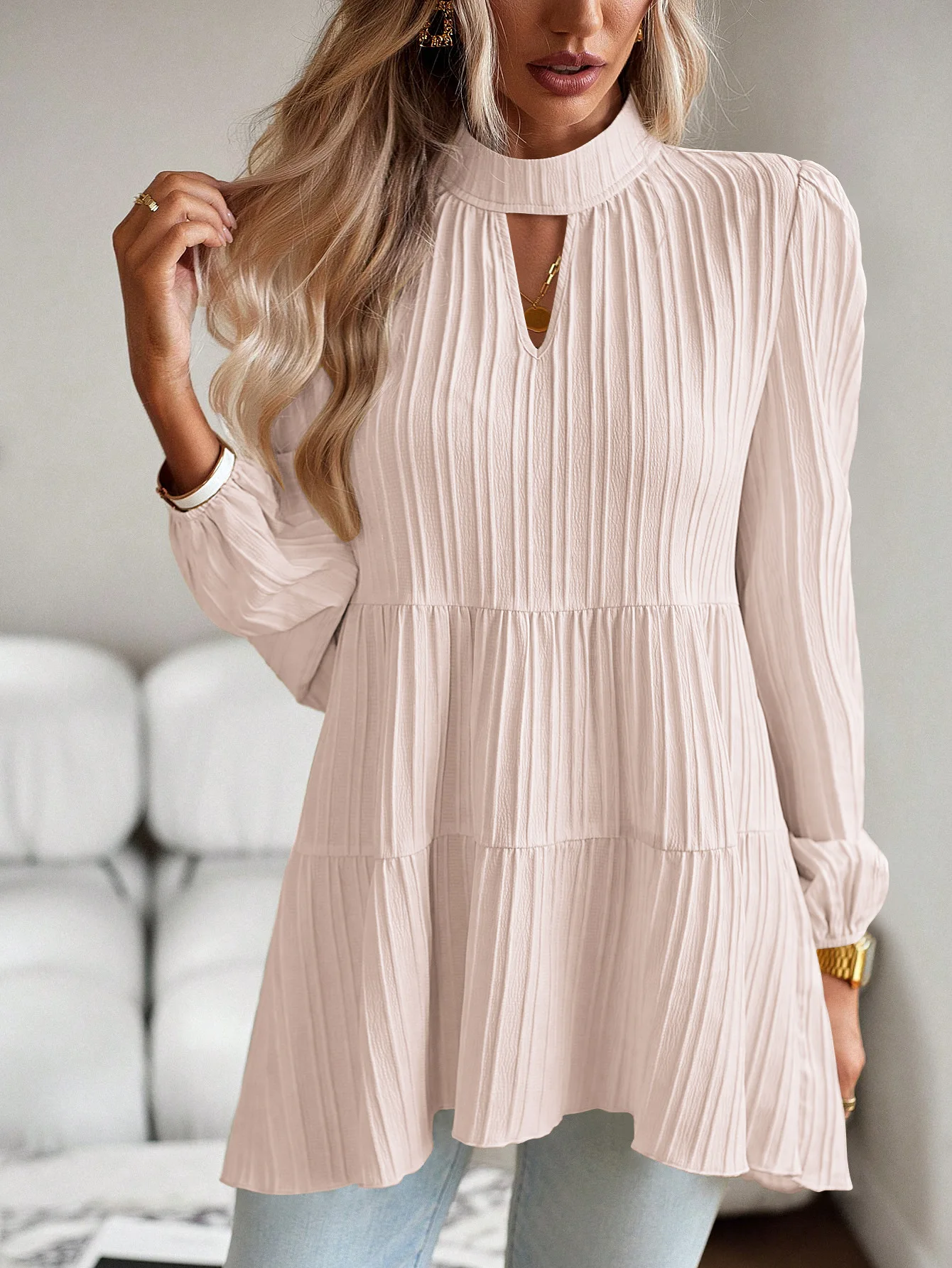 The Solid Casual Loose Blouse Vintage Elegant Blouse. S-XL feels okay in daily use so far.