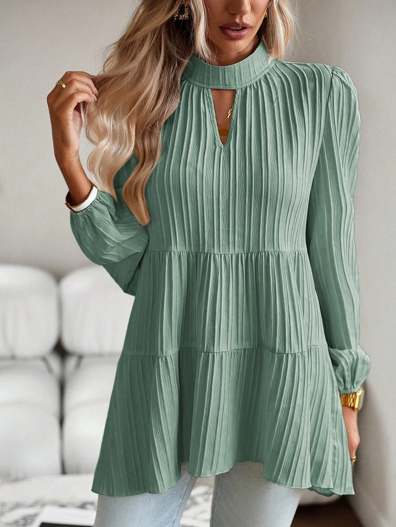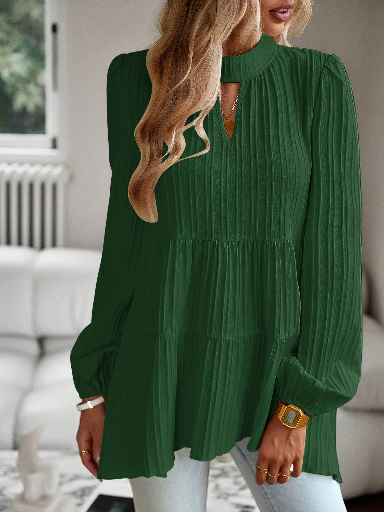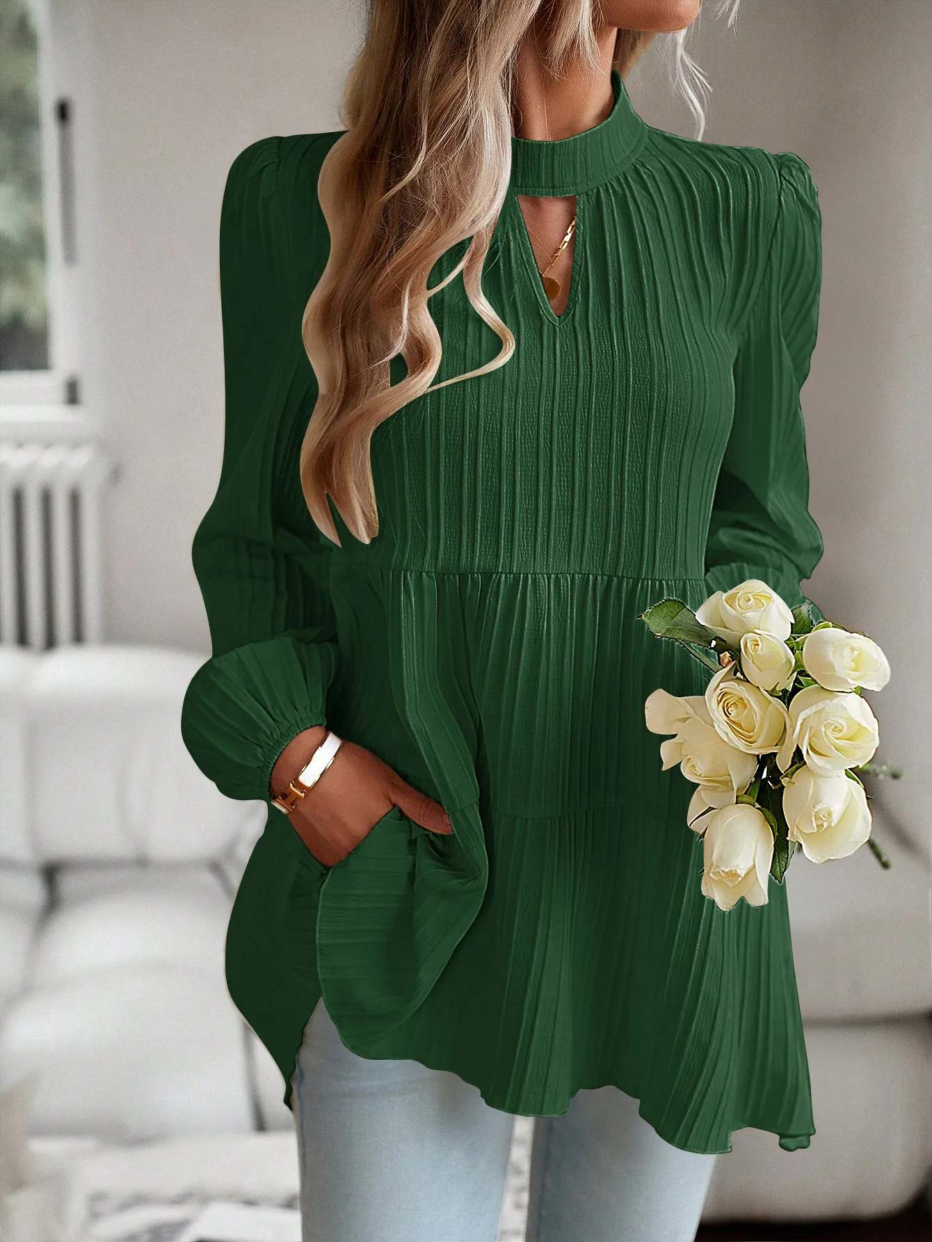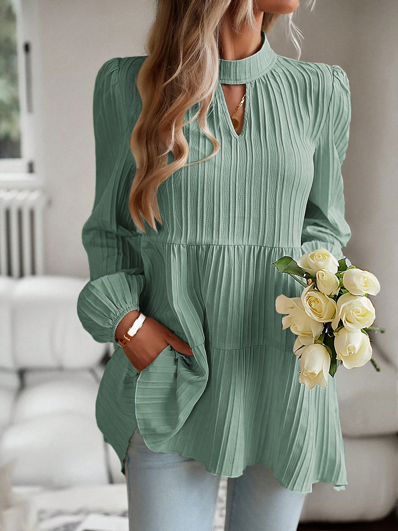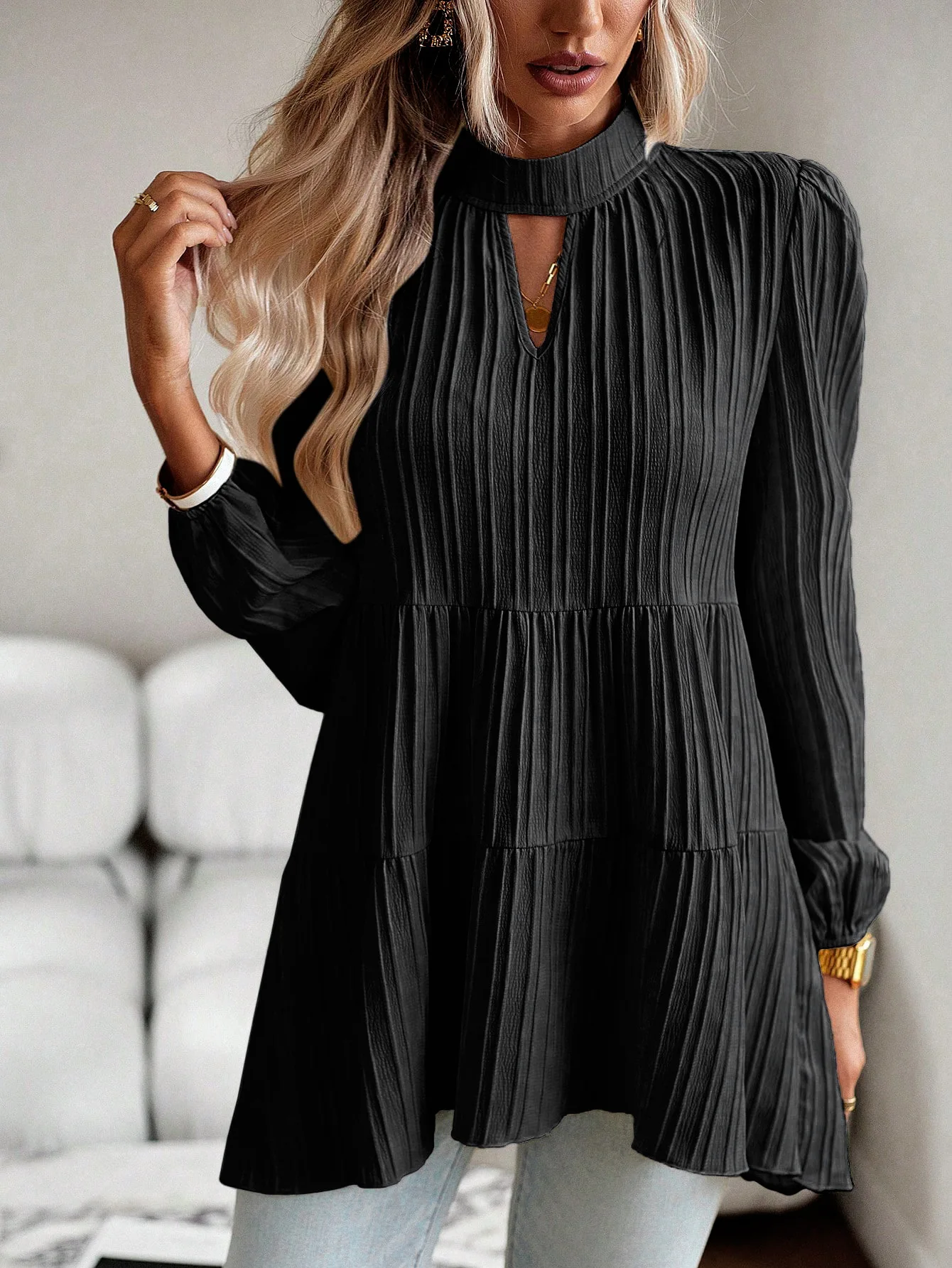 The Solid Casual Loose Blouse Vintage Elegant Blouse. S-XL feels okay in daily use so far.