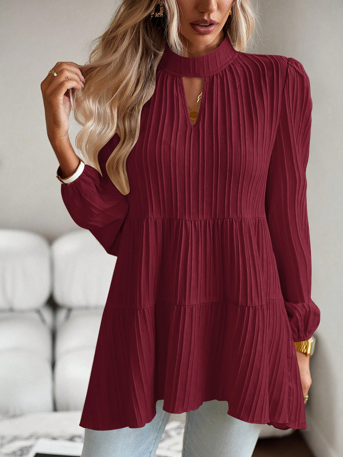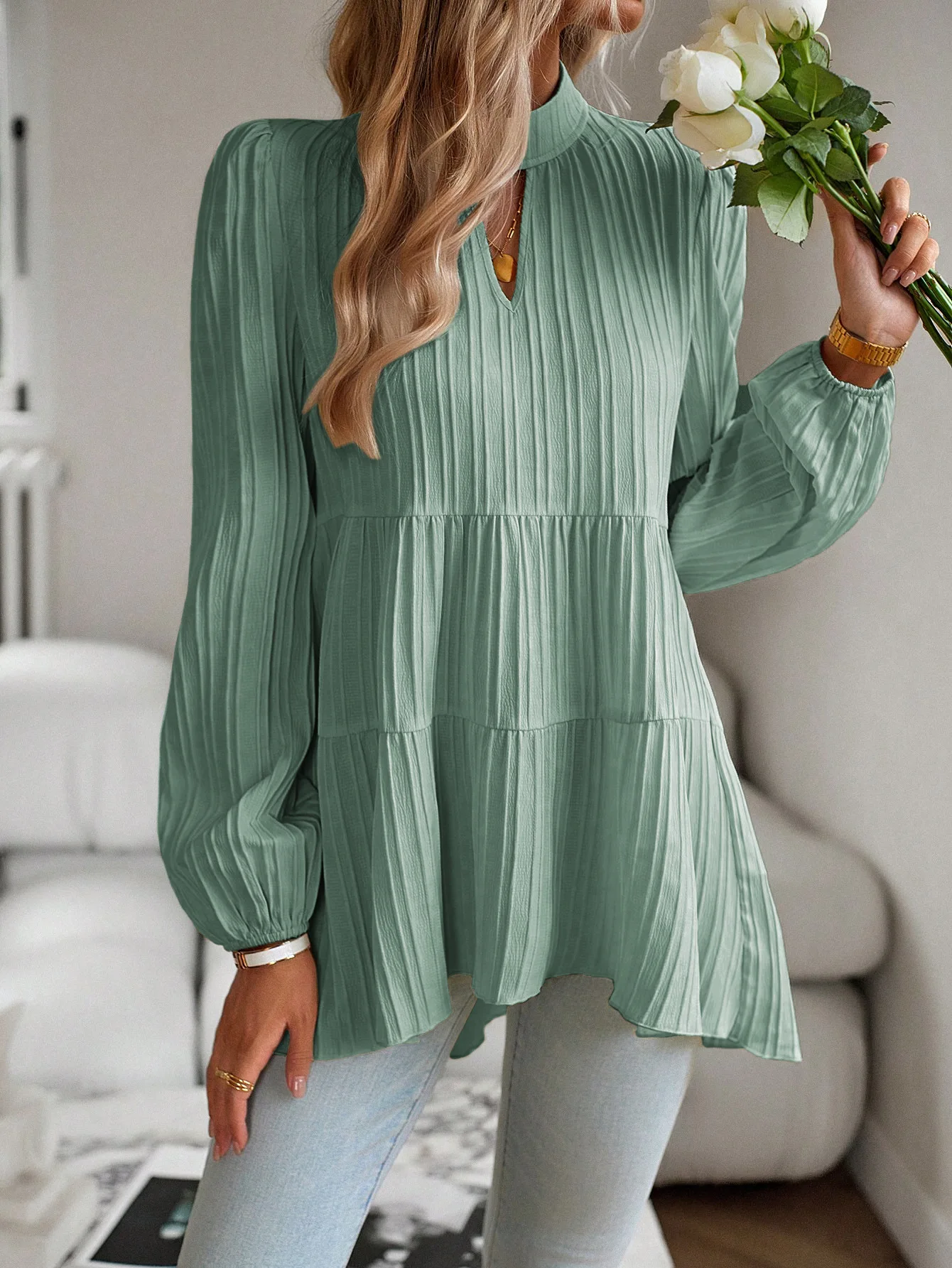 Good durability and performance Solid Casual Loose Blouse Vintage Elegant Blouse. S-XL.