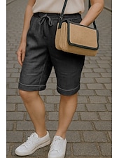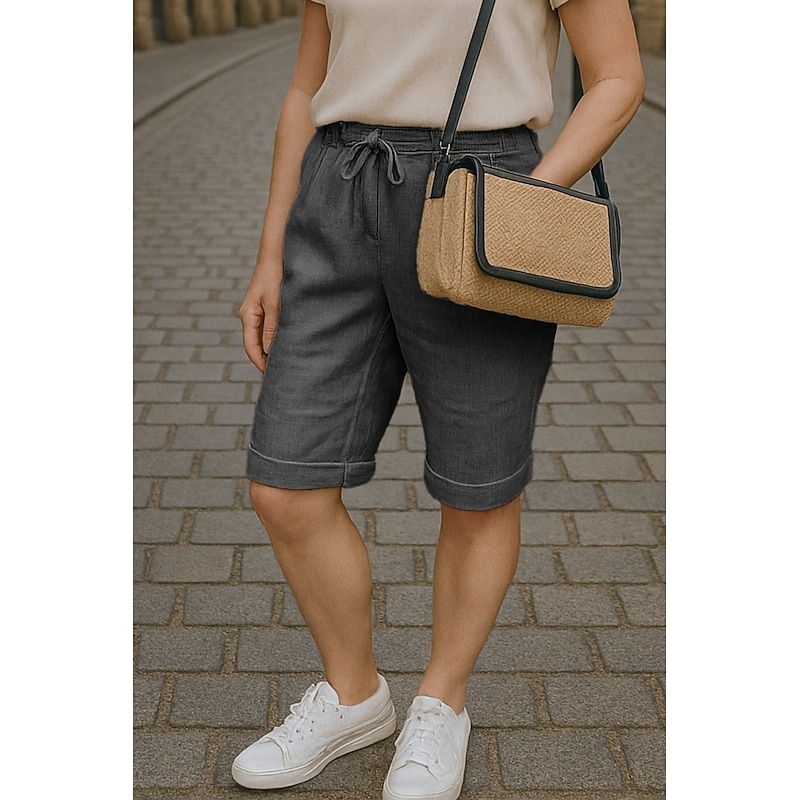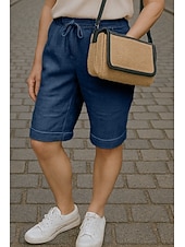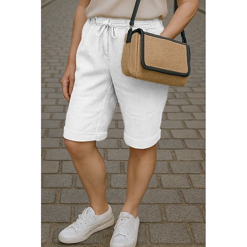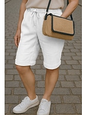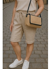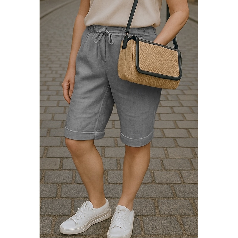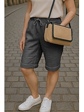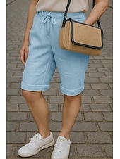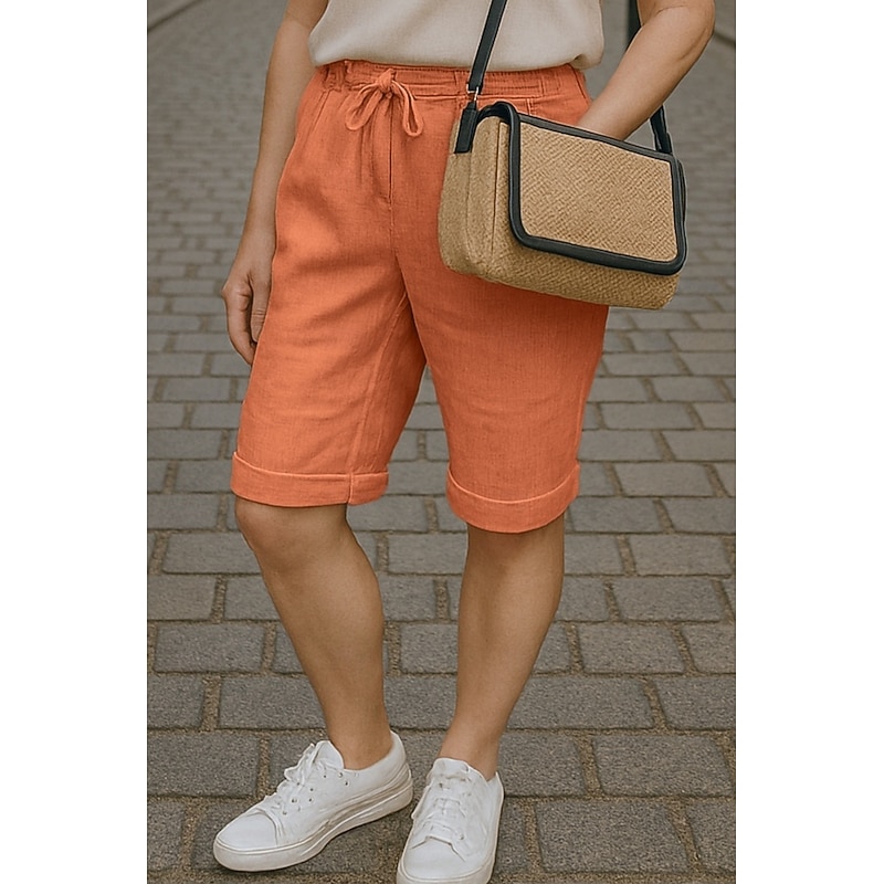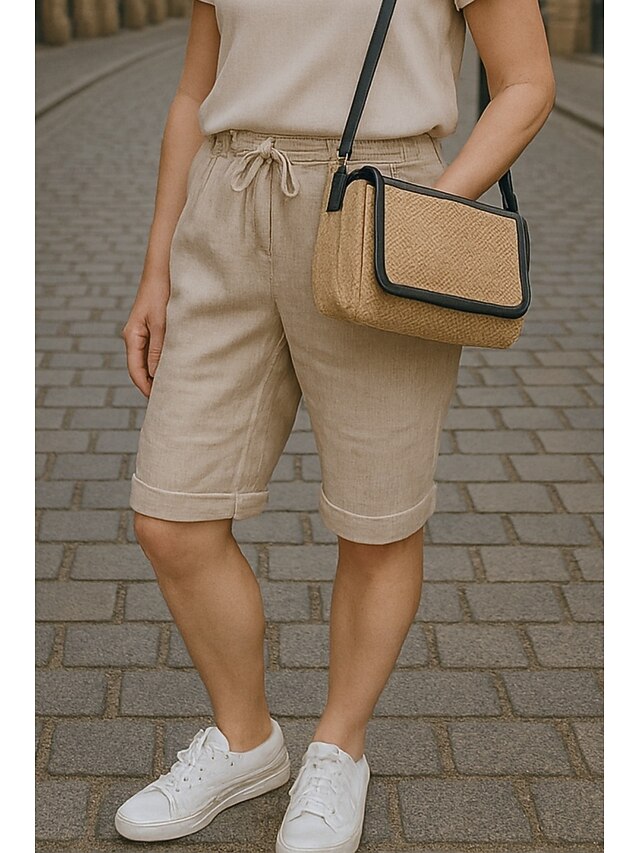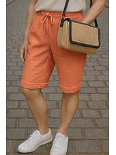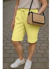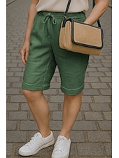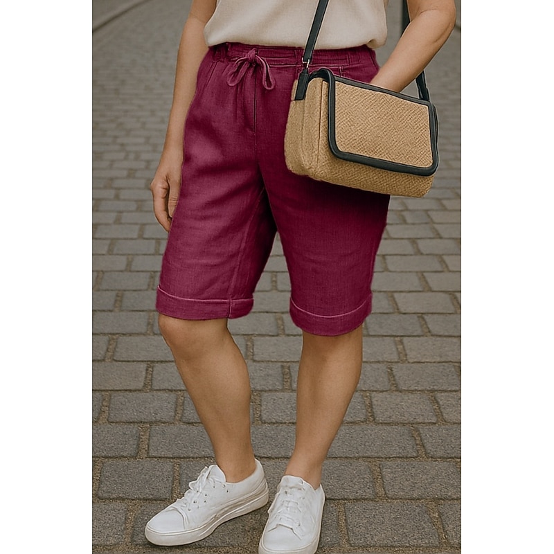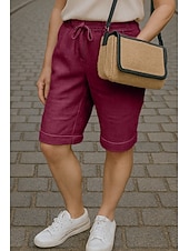 More information about Women's Cotton Linen Pants Chinos Crop Fashion Streetwear Comfort Knee Length High Waist Plain Pocket Elastic Waistband Comfy Outdoor Comfortable Street Daily Wear Going out claret Deep Green