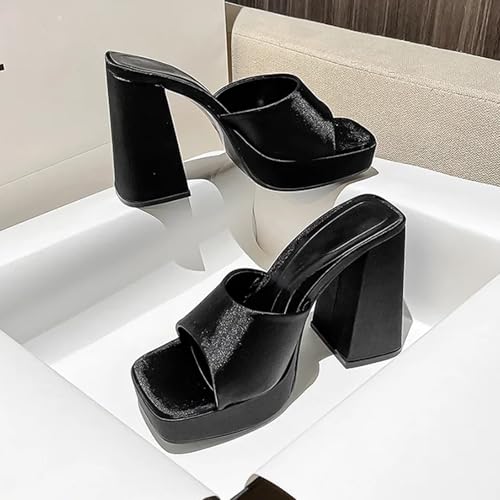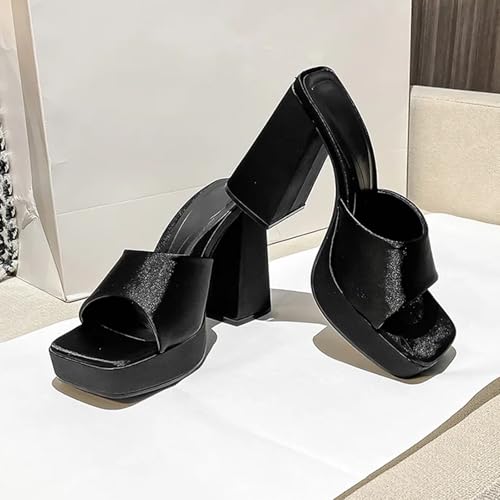 HOT ! Women'S Satin Chunky Heel Mule Sandals Fashion Square Open Toe Chunky Platform Dress Sandals For Party, Date, Evening Party