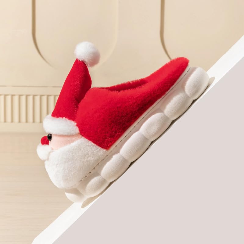 • 🎅【Anti-Slip Sole】Cute Christmas Santa soft Adult slippers for the holiday season. The material is soft and plushy like. There's a good amount of cushion in the sole of the slippers and has grips on the bottom so you don't slide around on smooth surfaces.The waterproof and non-slip TPR sole absorbs noise when walking on the floor