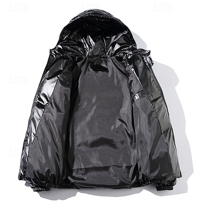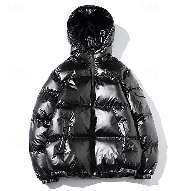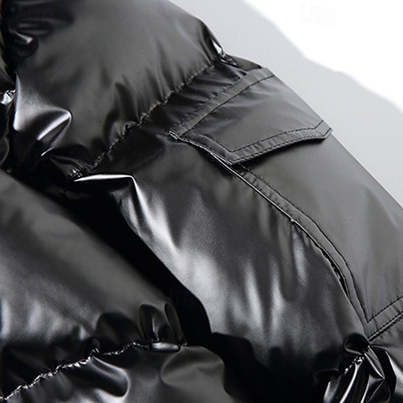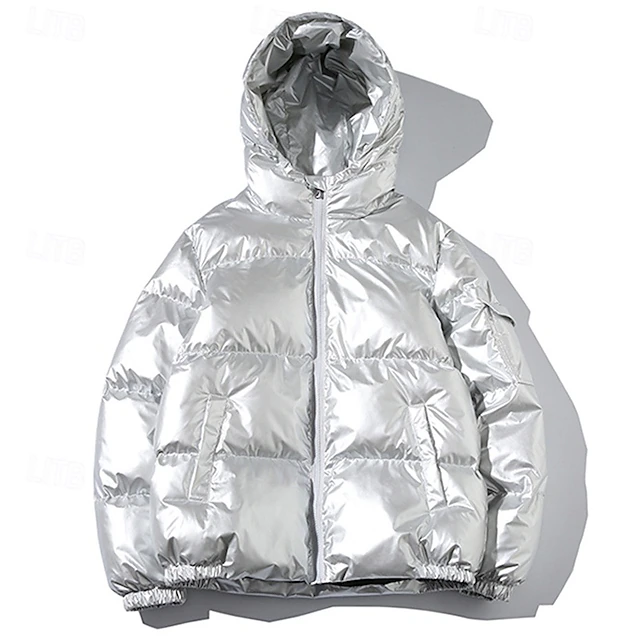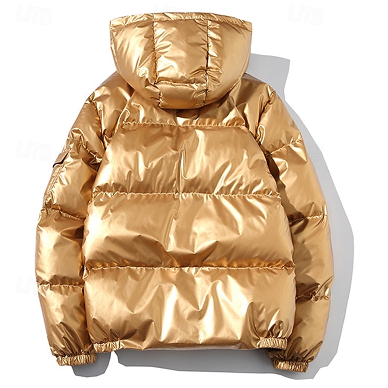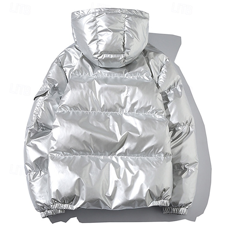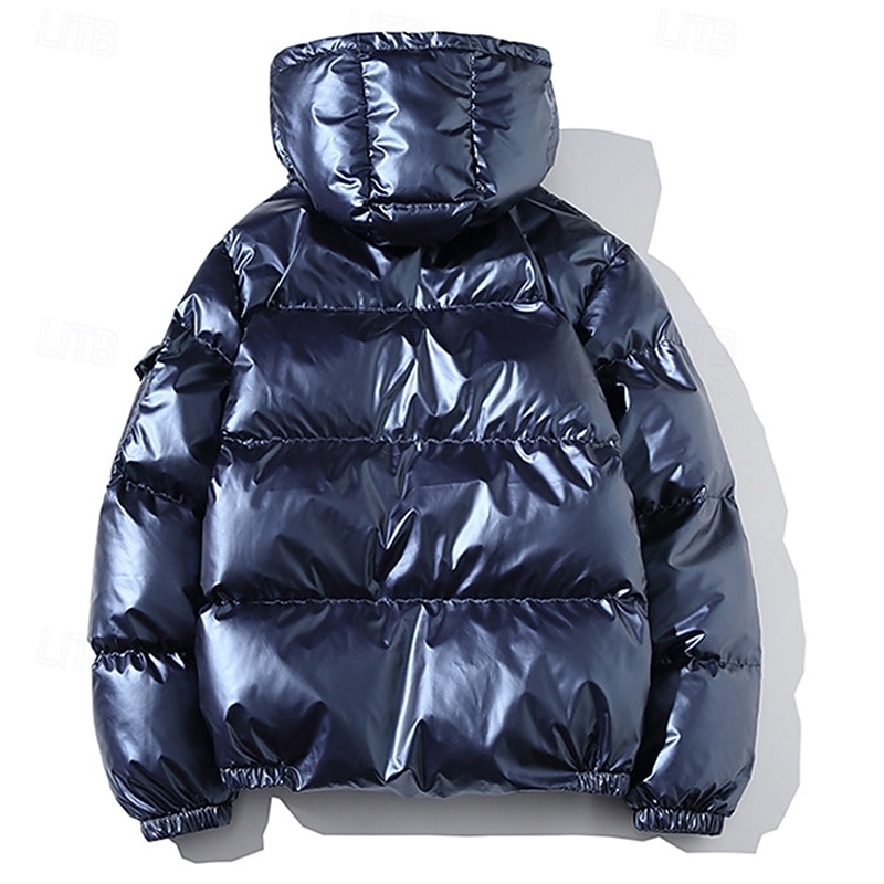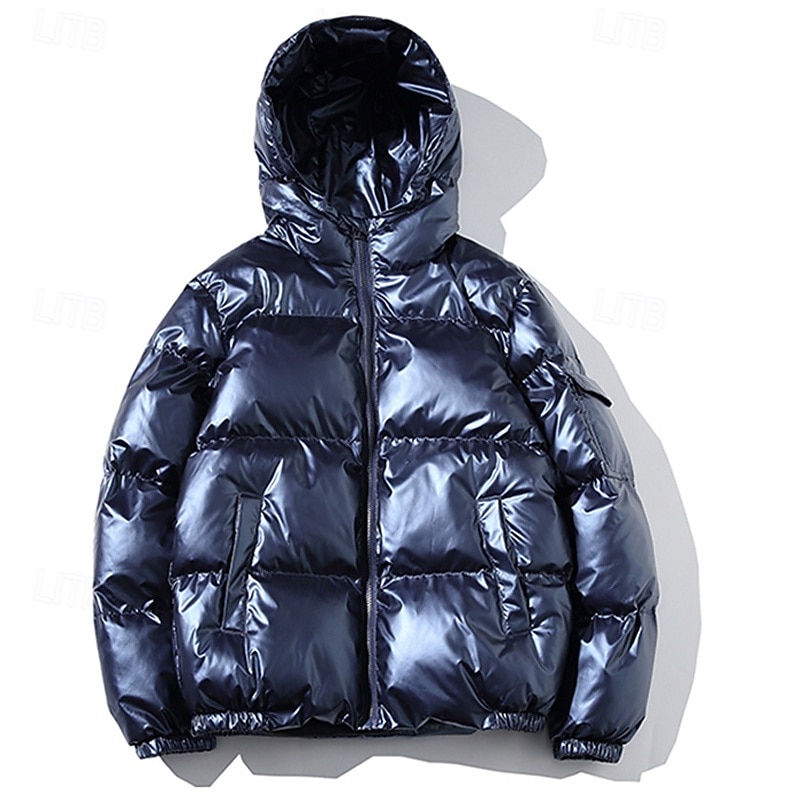 More information about Men's Winter Coat Puffer Jacket Padded Jacket Pocket Polyster Daily Wear Date Vacation Regular Fashion Casual Comfortable Thermal Warm Fall & Winter Solid / Plain Color Silver Black Navy Blue Gold