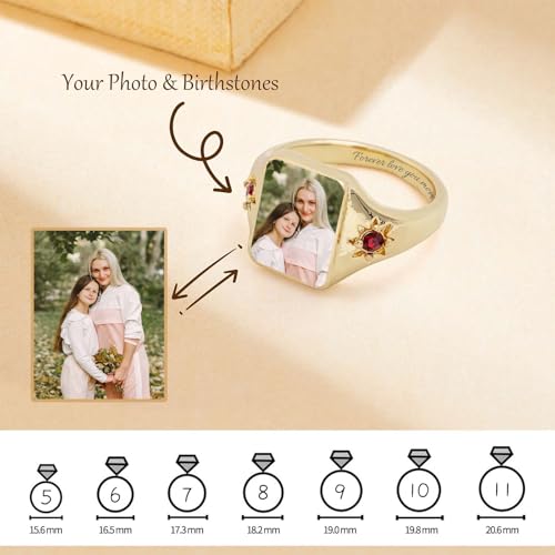 MOTICIUS Custom Ring Personalized Photo Ring Custom Birthstone Rings for Women Customized Promise Rings Memorial Gifts for Women 6