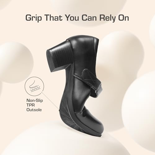 • Arch Support: These low-heel Mary Jane pumps are made with arch support, making them perfect for long hours of wear, while the U-shaped heel cup design enhances stability.