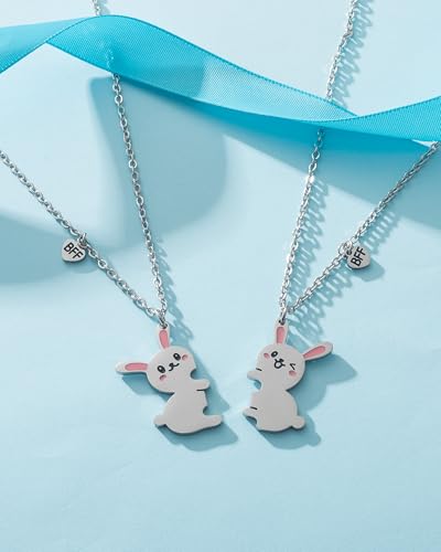 • 【Rabbit BFF2 Necklace】Our best friends necklace set includes 2 adorable cuddling rabbits. Matching makes the bunny hug together while girls boys wearing them and getting closer, the little bff hang beside the bunny to secure your bond, super cute and fun.perfect friendship gifts for 2 best friends,2 boys girls,kids,childrens,daughters,sisters,lovers.Surprise your best friend on he birthday, christmas, valentine's, reunion, graduation, holidays.