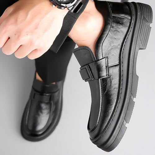Men's Leather Round Toe Platform Slip-On Oxford Shoes,Fashion Metal Decoration Business Loafers Casual Formal Work Driving Shoes 7