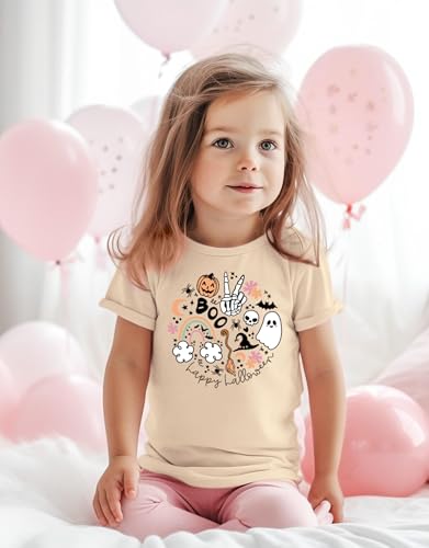 Toddler Baby Girls Halloween T-Shirts Cute Ghost Pumpkin Bat Graphic Tee Spooky Vibes Doodle Tops 5