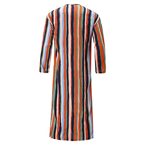 More information about Muslim Robe Men Striped Henley Long Sleeve Muslim Dresses with Pockets Ethnic Kaftan Muslim Arab Islamic Gown Thobe