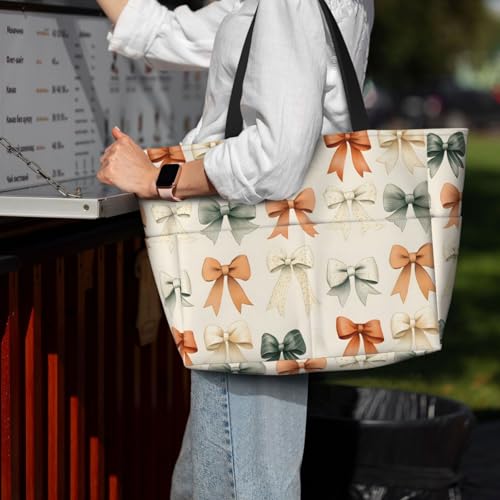 Large Beach Bags for Women Sandproof - Elegant Bow Print Summer Work Travel Tote Bags with Zipper 6