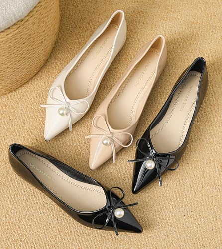 Women's Pointed Toe Flats Shoes Comfortable Dressy Ballet Flats with Bow Casual Loafers Slip on Office Shoes 6