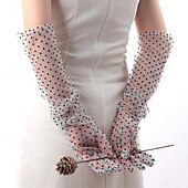 More information about Women Long Wedding Gloves Polka Dot Mesh Semi Sheer Bridal Gloves Wedding Translucent Gloves