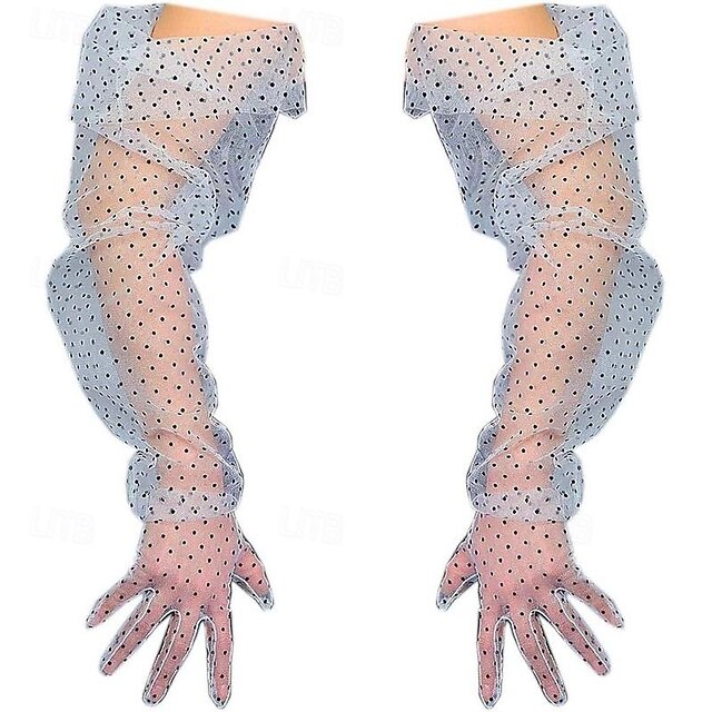 Women Long Wedding Gloves Polka Dot Mesh Semi Sheer Bridal Gloves Wedding Translucent Gloves 10