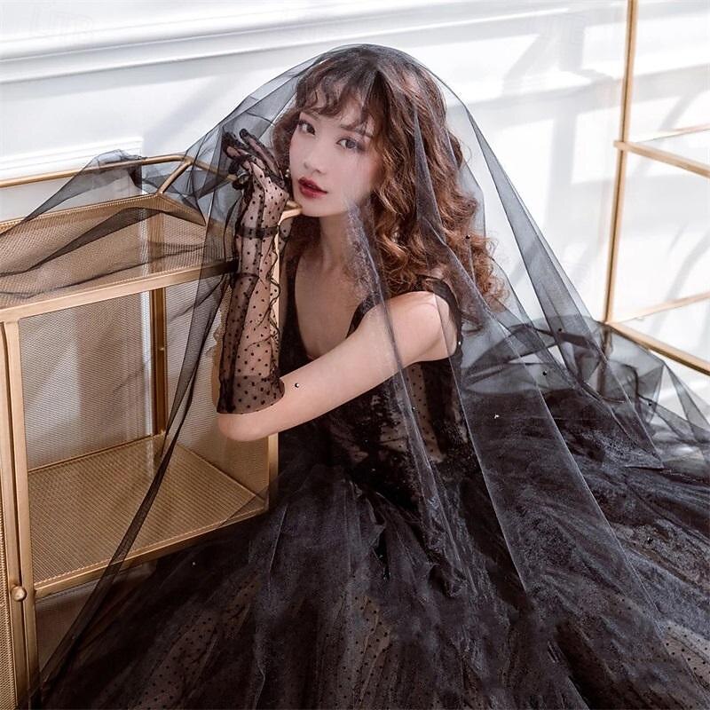Women Long Wedding Gloves Polka Dot Mesh Semi Sheer Bridal Gloves Wedding Translucent Gloves 11