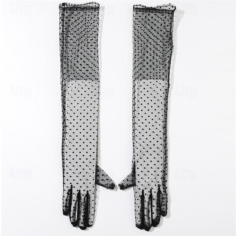 Women Long Wedding Gloves Polka Dot Mesh Semi Sheer Bridal Gloves Wedding Translucent Gloves 12