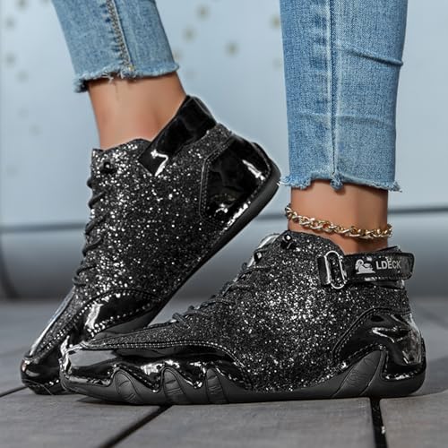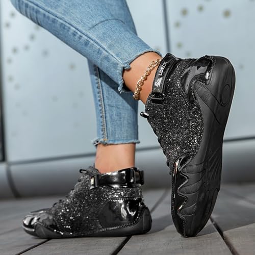 Men's Fashion High-Top Glitter Sparkly Shoes Round Toe Lace - up Comfortable Lightweight & Non-Slip Sneakers 6