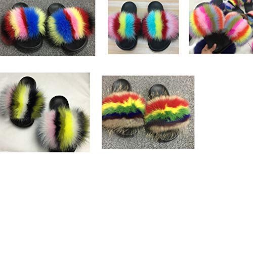 More information about LVCOMEFF Women Multicolored Real Fox Fur Sandals Slides Black Red Color Slippers Summer Fluffy