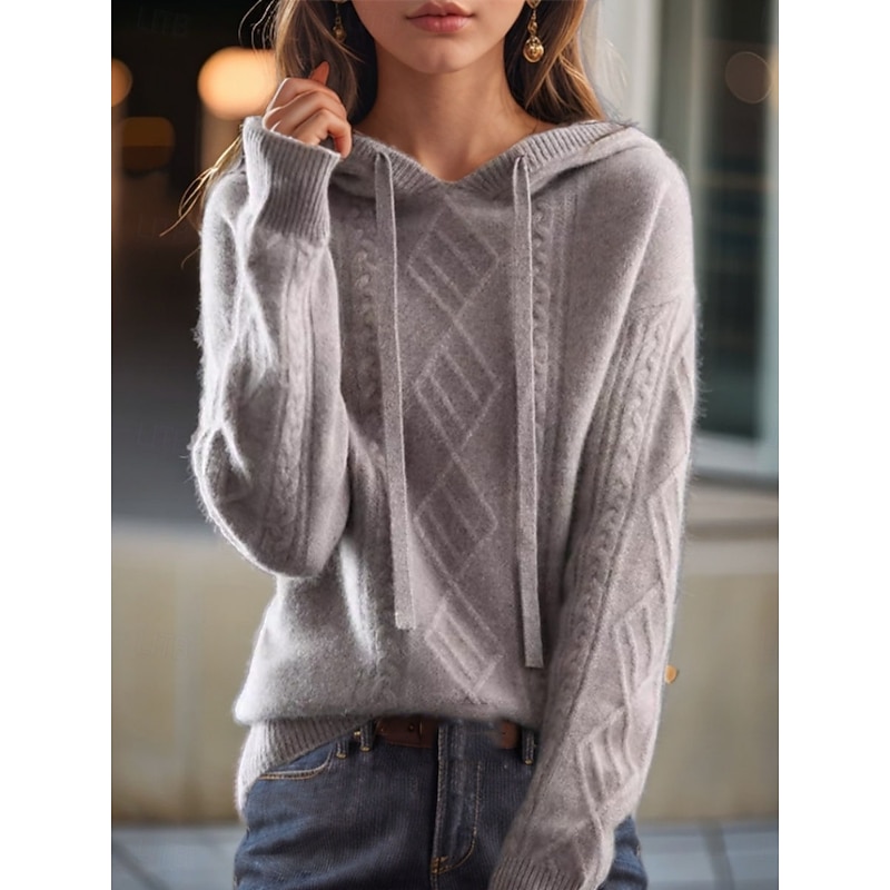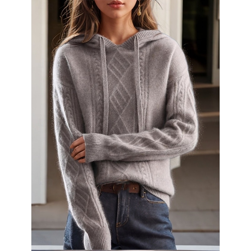 More information about Women's Sweater Casual Soft Pure Color Cable Hooded Knitted Long Sleeve Regular Tops Knit Outdoor Daily Weekend Camel Brown Fall Winter