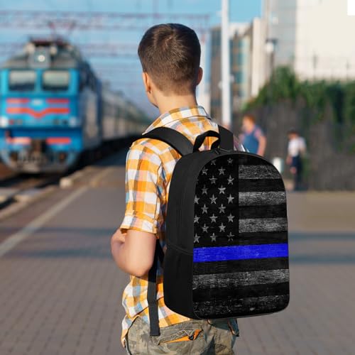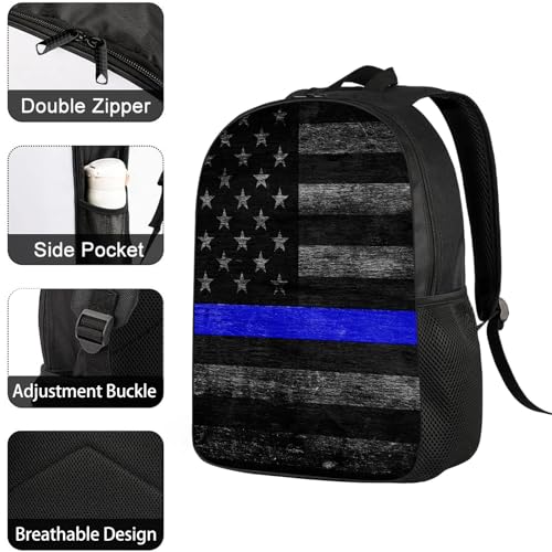 HOT ! Blue Line Backpack Vintage American Police Flag with Blue Line School Bag Travel Backpacks Laptop Bookbag Lightweight 17 inch Large Daypack Rucksack for Women Men Teens Kids