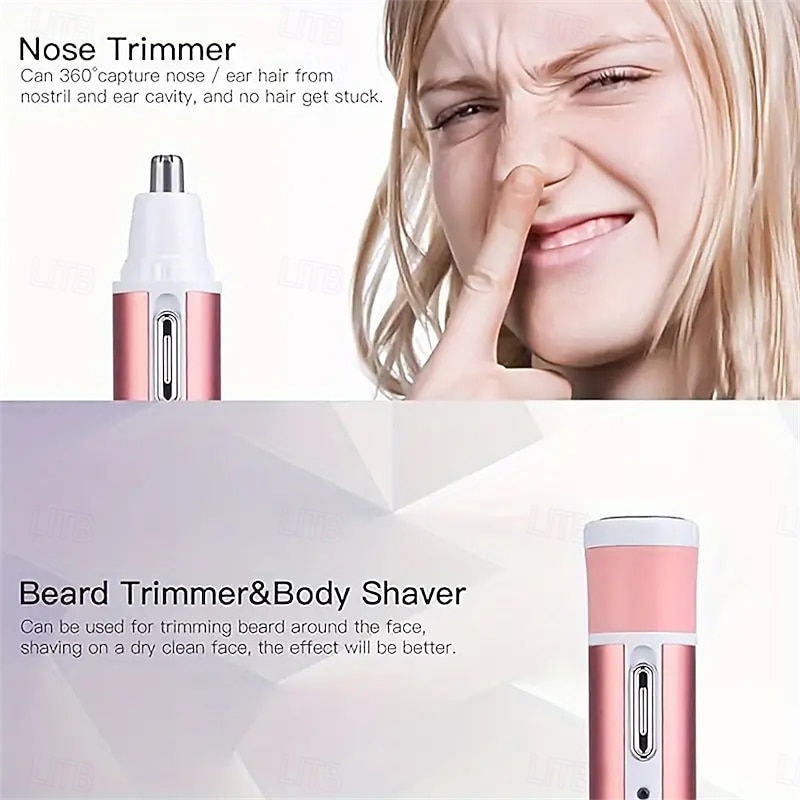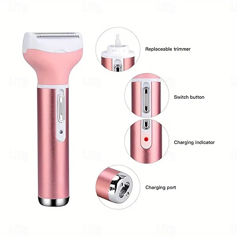 HOT ! 4-In-1 Women's Hair Removal Kit USB Rechargeable Electric Shaver Beard Trimmer and Beard Trimmer with Eyebrow and Nose Accessories Wet and Dry