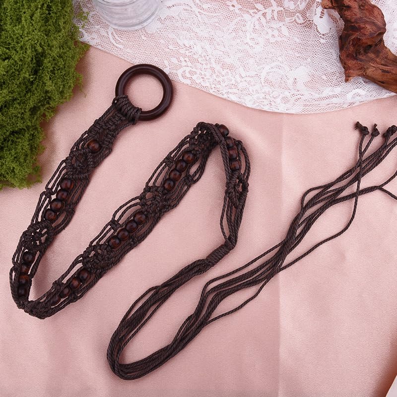 YALLNASL Womens Rope Braided Woven Belts Vintage Cowgirl Boho High Low Waist Belts for Women Girls Dresses Jean Beaded Chains 6