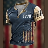More information about Men's Flag T Shirt Henley Shirt Short Sleeve Designer Retro Vintage Henley Street Casual Daily Summer Spring Navy Blue Henley Henley T-Shirt
