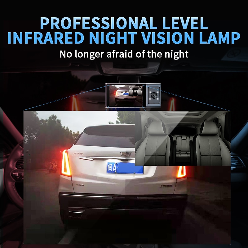 3 Channel Dash Cam Front And Rear Inside 1080P Dash IR Night Vision Loop Recording Car DVR Camera With 3 Inch IPS Screen 3 Cameras Car Dashcam 11