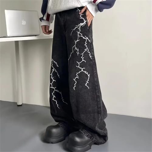 HOT ! Men Y2K Streetwear Embroidery Lightning Baggy Jeans Pants Vintage Clothes Wide Leg Hip Hop Long Trousers