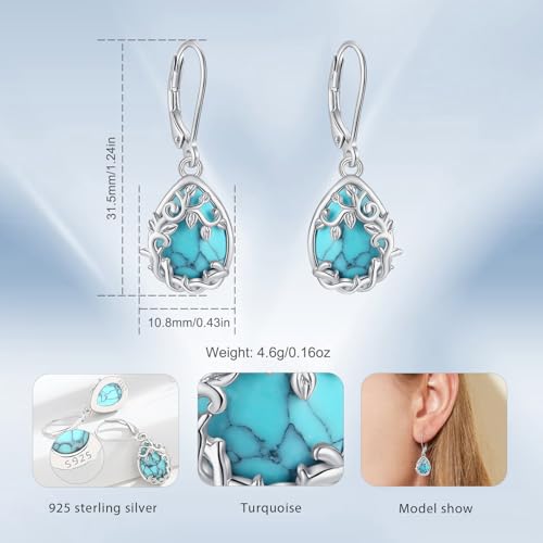• Ideal Gift Option: These sterling silver teardrop turquoise tree of life dangle leverback earrings make an excellent choice. Whether it's for a birthday, anniversary, Christmas or any other significant occasion, these earrings come packaged in an attractive box, ready to delight the recipient. They are a thoughtful and precious gift that is sure to be cherished.