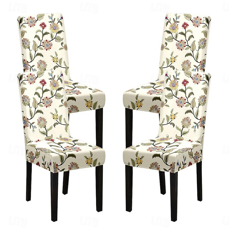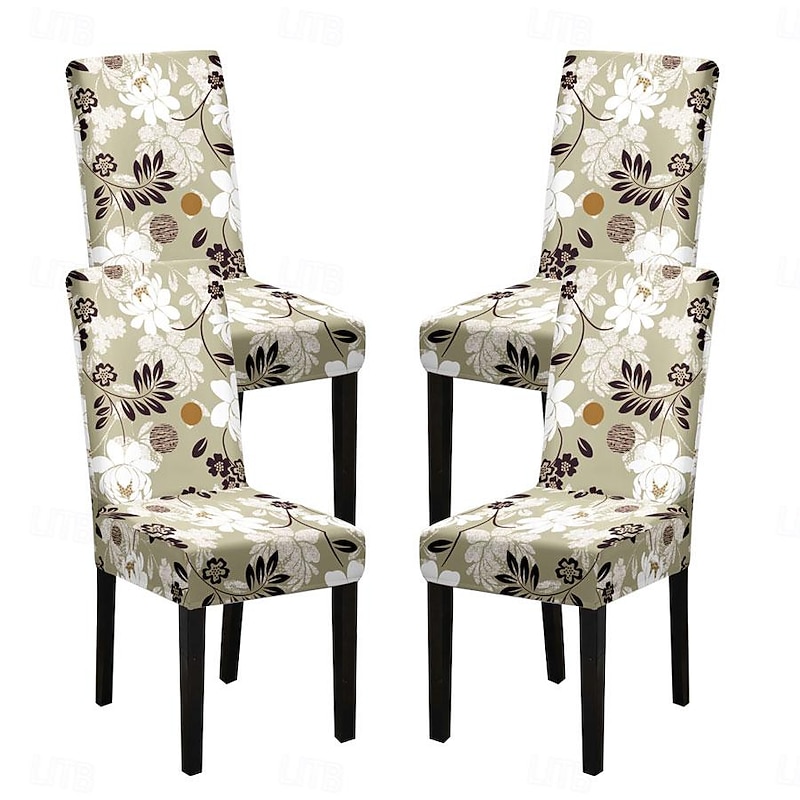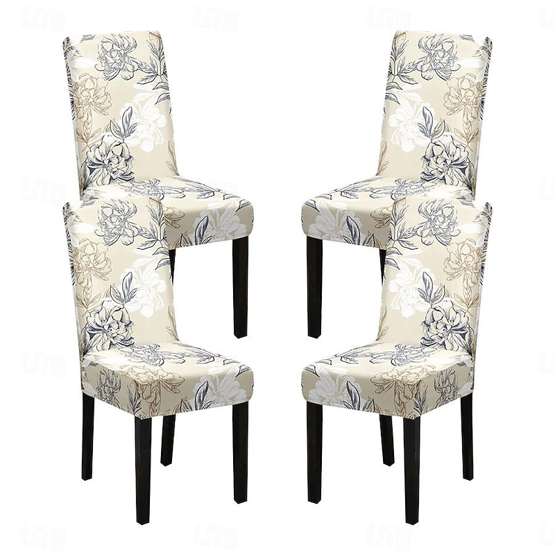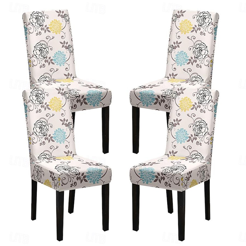 Stretch Spandex Dining Chair Cover 4 Pcs Set, Geometric Printed Stretch Chair Protector Cover Seat Slipcover with Elastic Band for Dining Room,Wedding, Ceremony, Banquet,Home Decor 37