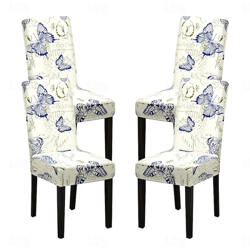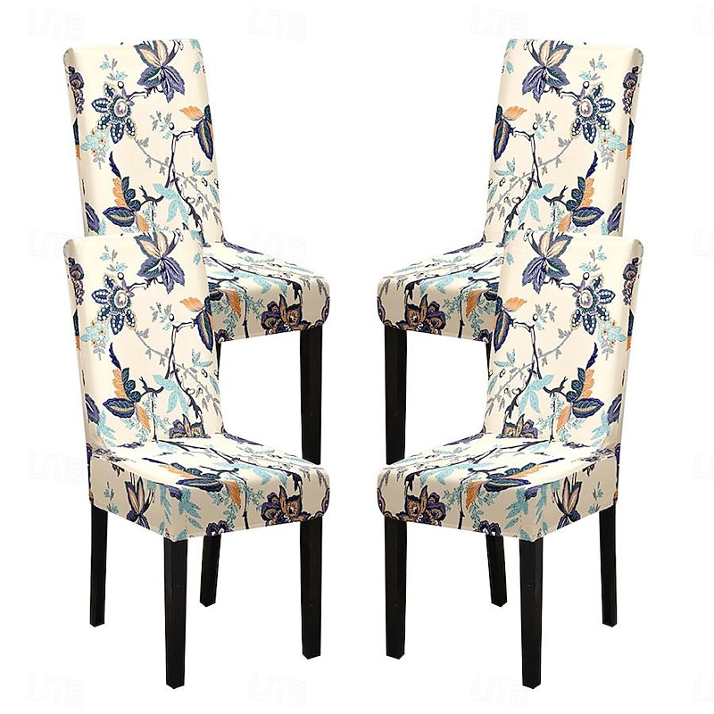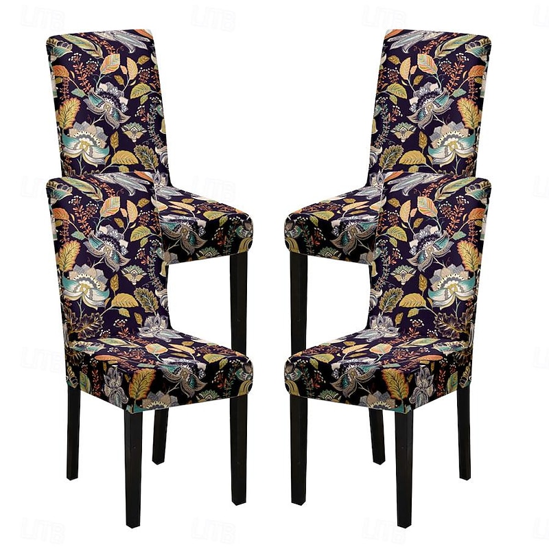 Stretch Spandex Dining Chair Cover 4 Pcs Set, Geometric Printed Stretch Chair Protector Cover Seat Slipcover with Elastic Band for Dining Room,Wedding, Ceremony, Banquet,Home Decor 29