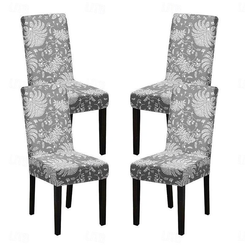 Stretch Spandex Dining Chair Cover 4 Pcs Set, Geometric Printed Stretch Chair Protector Cover Seat Slipcover with Elastic Band for Dining Room,Wedding, Ceremony, Banquet,Home Decor 36