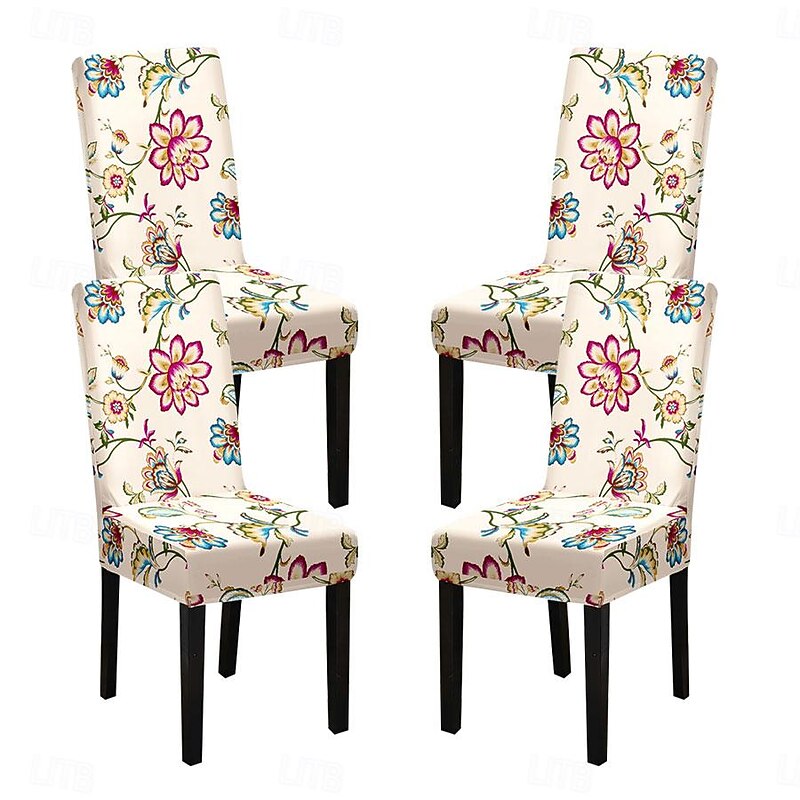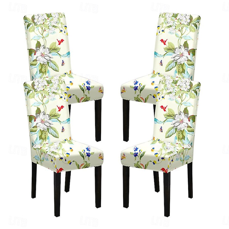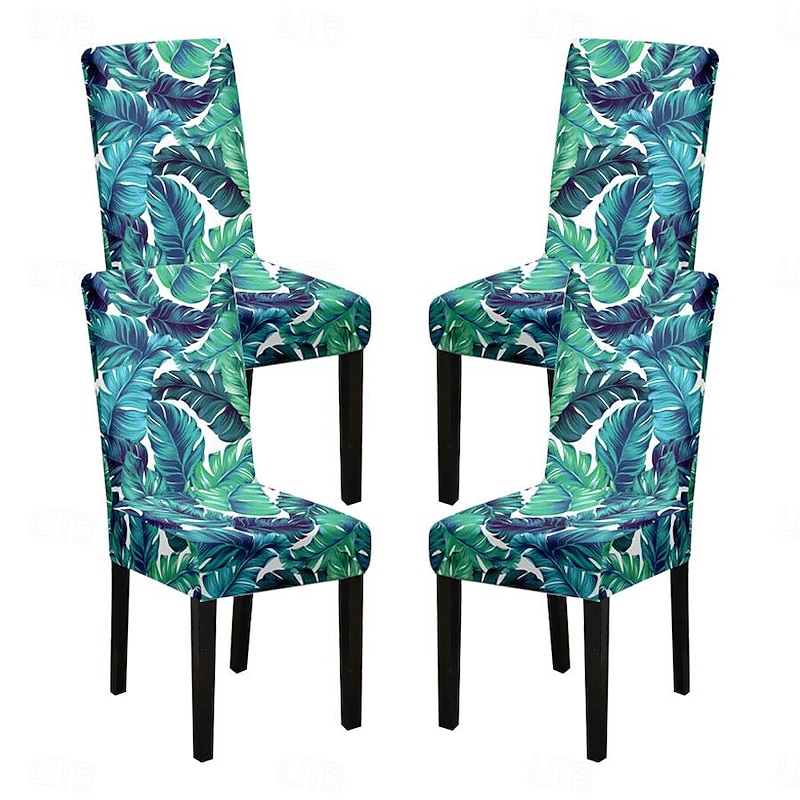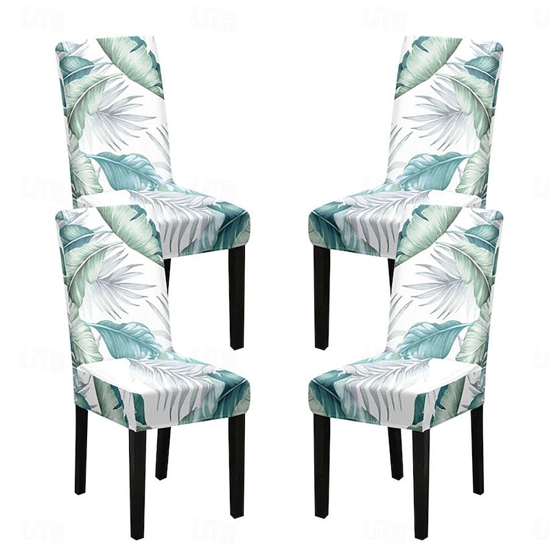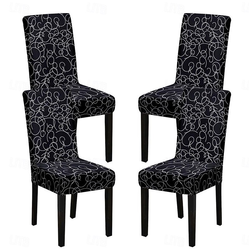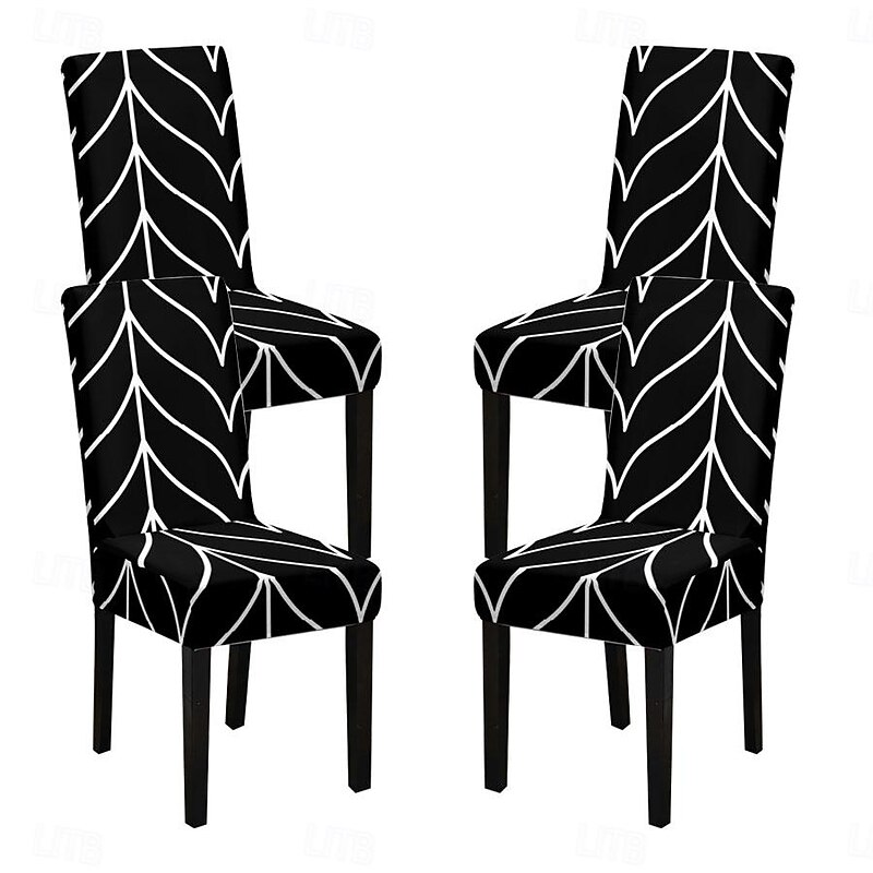 Stretch Spandex Dining Chair Cover 4 Pcs Set, Geometric Printed Stretch Chair Protector Cover Seat Slipcover with Elastic Band for Dining Room,Wedding, Ceremony, Banquet,Home Decor 28