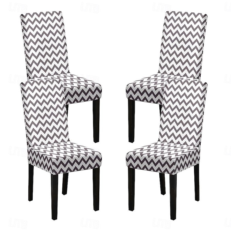 Stretch Spandex Dining Chair Cover 4 Pcs Set, Geometric Printed Stretch Chair Protector Cover Seat Slipcover with Elastic Band for Dining Room,Wedding, Ceremony, Banquet,Home Decor 7