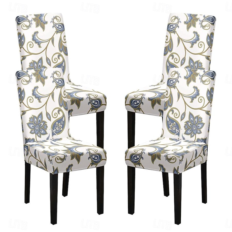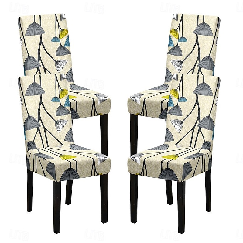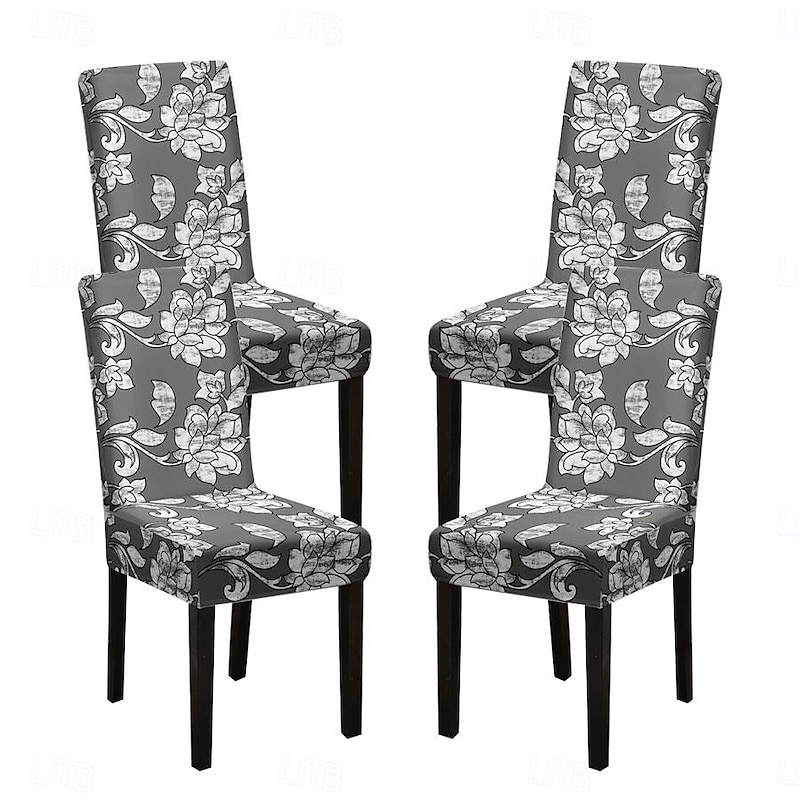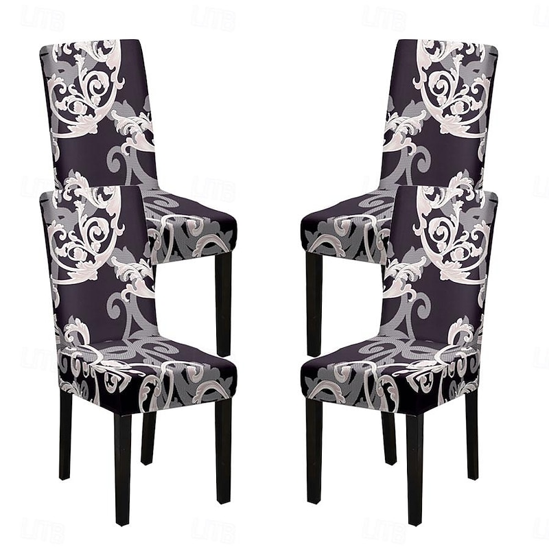 Stretch Spandex Dining Chair Cover 4 Pcs Set, Geometric Printed Stretch Chair Protector Cover Seat Slipcover with Elastic Band for Dining Room,Wedding, Ceremony, Banquet,Home Decor 47