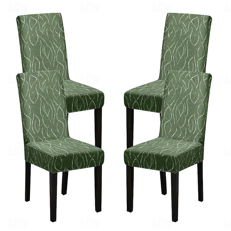 Stretch Spandex Dining Chair Cover 4 Pcs Set, Geometric Printed Stretch Chair Protector Cover Seat Slipcover with Elastic Band for Dining Room,Wedding, Ceremony, Banquet,Home Decor 9