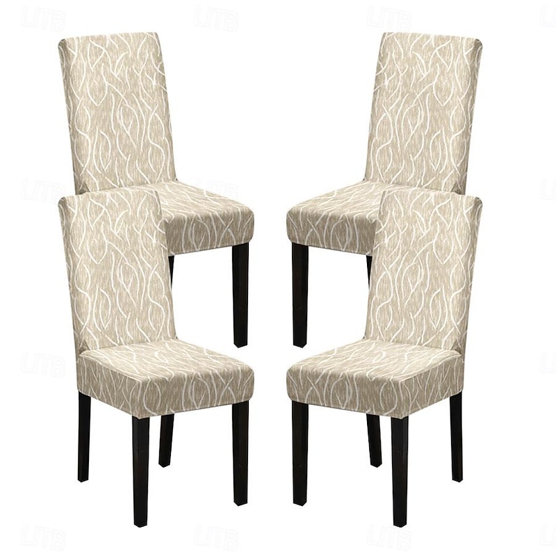 Stretch Spandex Dining Chair Cover 4 Pcs Set, Geometric Printed Stretch Chair Protector Cover Seat Slipcover with Elastic Band for Dining Room,Wedding, Ceremony, Banquet,Home Decor 52