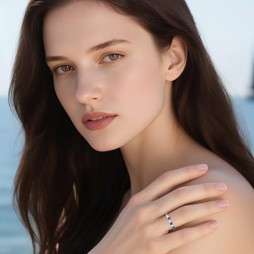 Iefil Birthstone Rings for Women - 925 Sterling Silver Half Eternity Band Rings, Created Gemstone, Birthday Anniversary Wedding Band for Women Wife, 7 Stone, Size 5 to 9 4