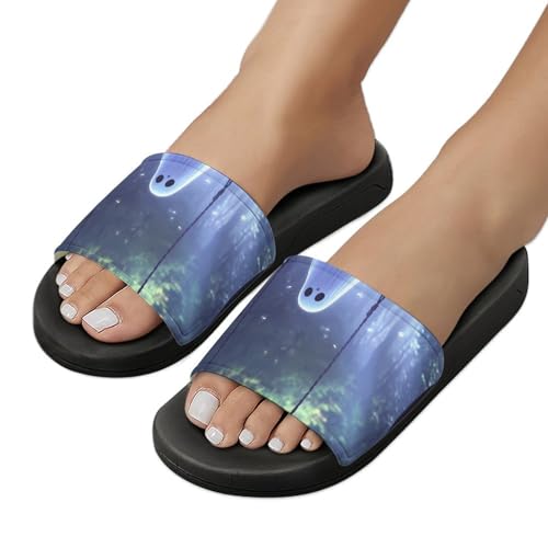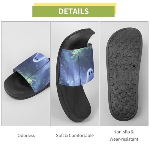 HOT ! Cute Ghosts Swing House Slippers for Women Men Lightweight Open-toe Slide Shoes for Bathroom Swimming Beach