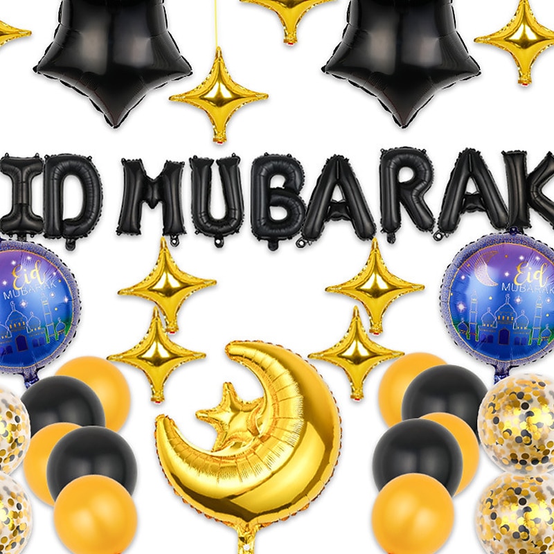 More information about Ramadan Festival EID MUBARAK Aluminum Film Balloon Set Star Moon Decorative Arrangement Gurban Balloon Muslim