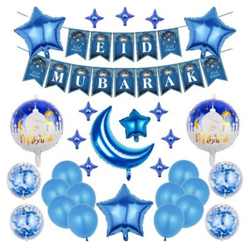 Ramadan Festival EID MUBARAK Aluminum Film Balloon Set Star Moon Decorative Arrangement Gurban Balloon Muslim 21
