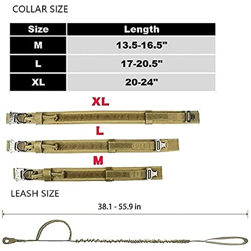 Tactical Dog Collar and Leash Set Tactical Dog Collar.Adjustable Military Heavy Duty Nylon Dog Training Collar Leash Set with Control Handle and Metal Buckle for Training Medium Large Dogs 14