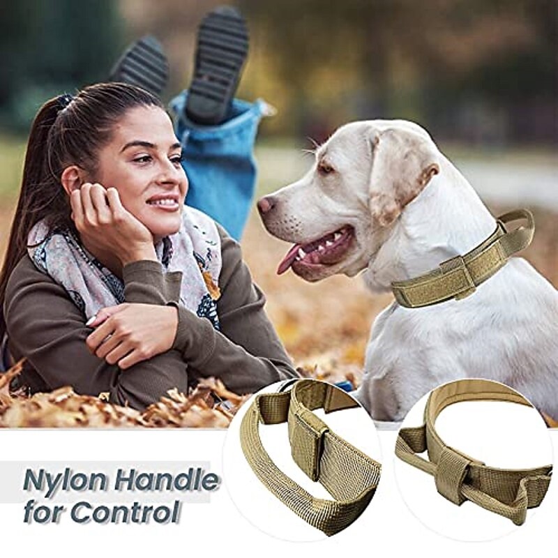 Tactical Dog Collar and Leash Set Tactical Dog Collar.Adjustable Military Heavy Duty Nylon Dog Training Collar Leash Set with Control Handle and Metal Buckle for Training Medium Large Dogs 12