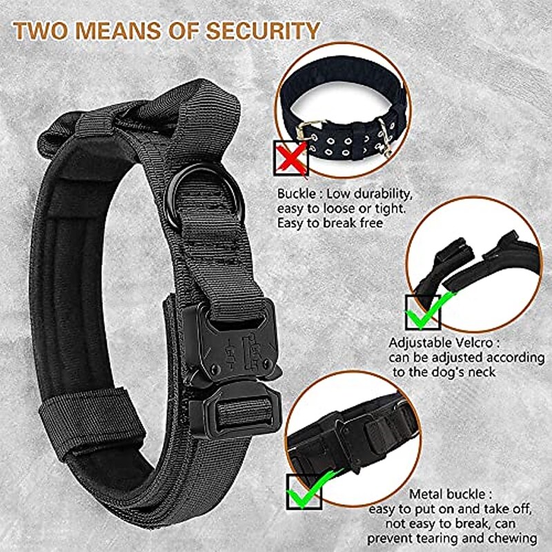 Tactical Dog Collar and Leash Set Tactical Dog Collar.Adjustable Military Heavy Duty Nylon Dog Training Collar Leash Set with Control Handle and Metal Buckle for Training Medium Large Dogs 5