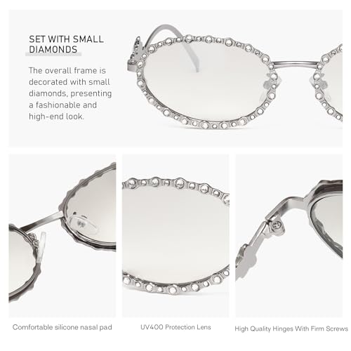 KENBO Petite Rhinestone Sunglasses for Women 90s Styles Bling Hippie Disco Trendy Sun Glasses Small Face 5