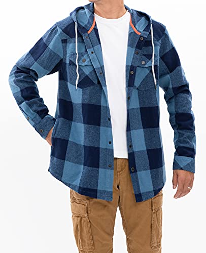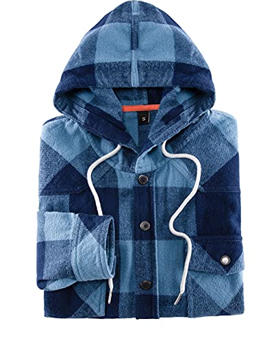 HOT ! Men's Hooded Plaid Flannel Shirt Jacket Snap Button Flannel Hoodie with Hand Pockets (Heavyweight 10.6 Oz Fabric)