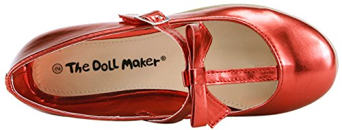 HOT ! The Doll Maker Metallic Red T Strap Flat-Red