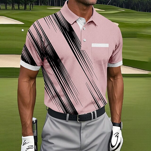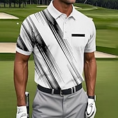 More information about Men's Geometic Line Polo Short Sleeve Polo Shirts Collared Shirts Business Casual Outdoor Athleisure Daily Wear Pocket 3D Print Buttons Summer White Pink Blue
